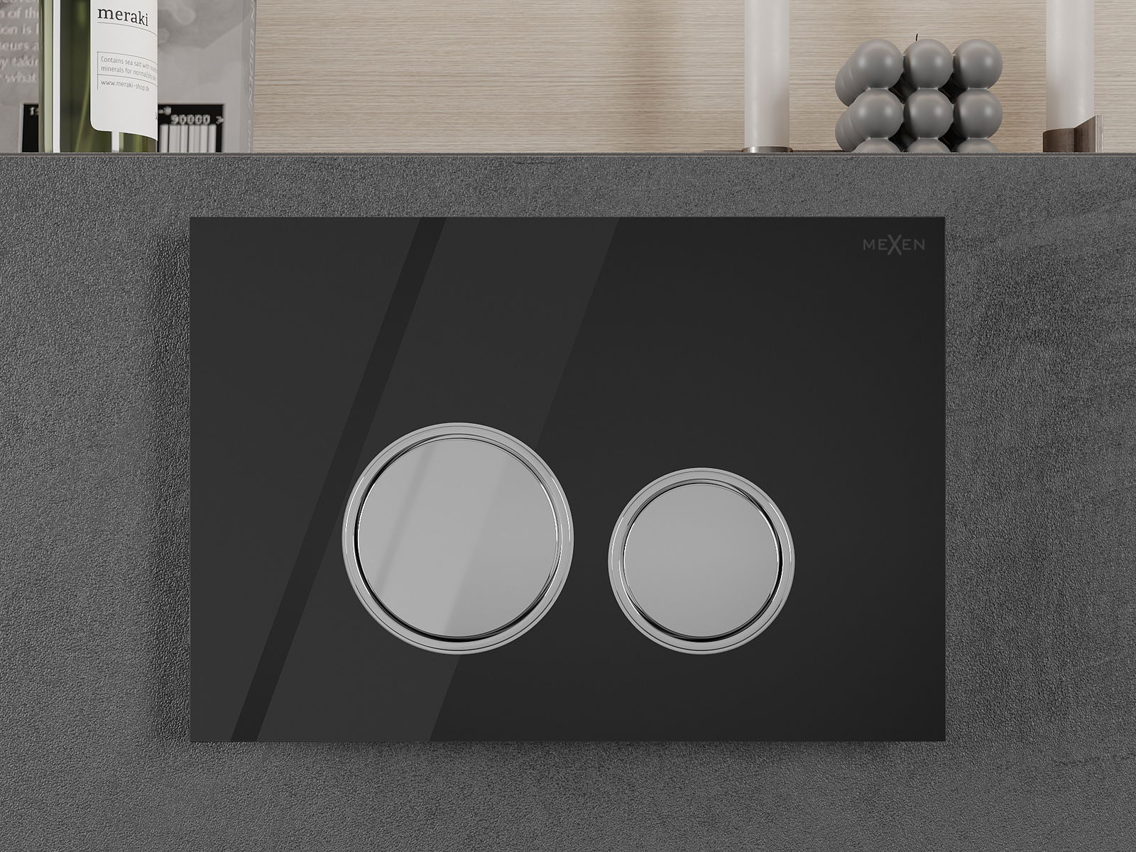 Het doorspoelen wordt op de traditionele manier geactiveerd - het indrukken van een knop activeert een hendel die een klep opent en water doorspoelt. Het is een eenvoudige en intuïtieve oplossing die vaak wordt aangetroffen in badkamers.