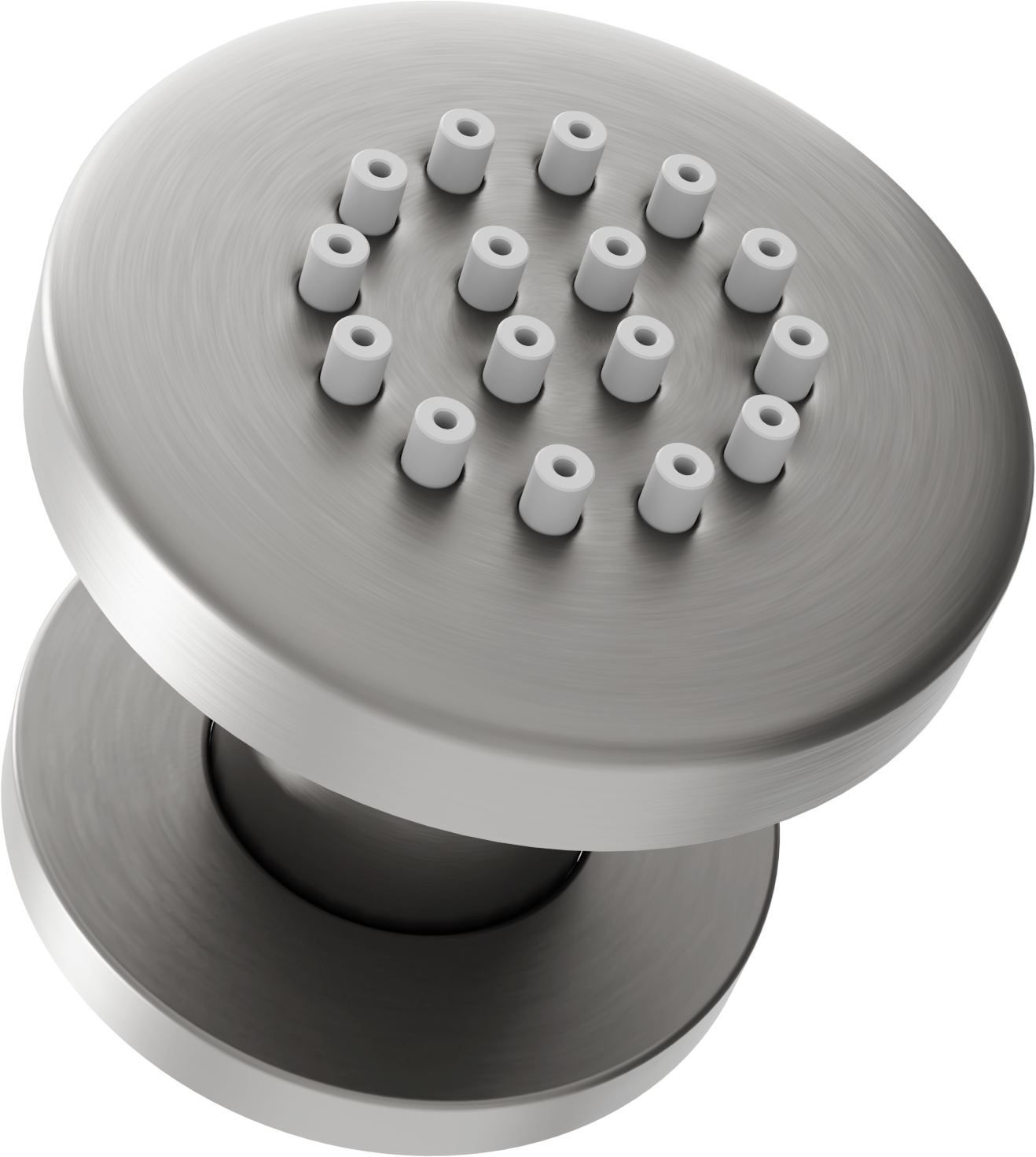 Het systeem kenmerkt zich door het gebruik van siliconen rubbertjes, beperkt kalkaanslag en vergemakkelijkt het schoonmaken – even afvegen met een vinger of doekje. Op deze manier kan verstopping van de sproeiers worden voorkomen en de duurzaamheid van het product worden verlengd.
