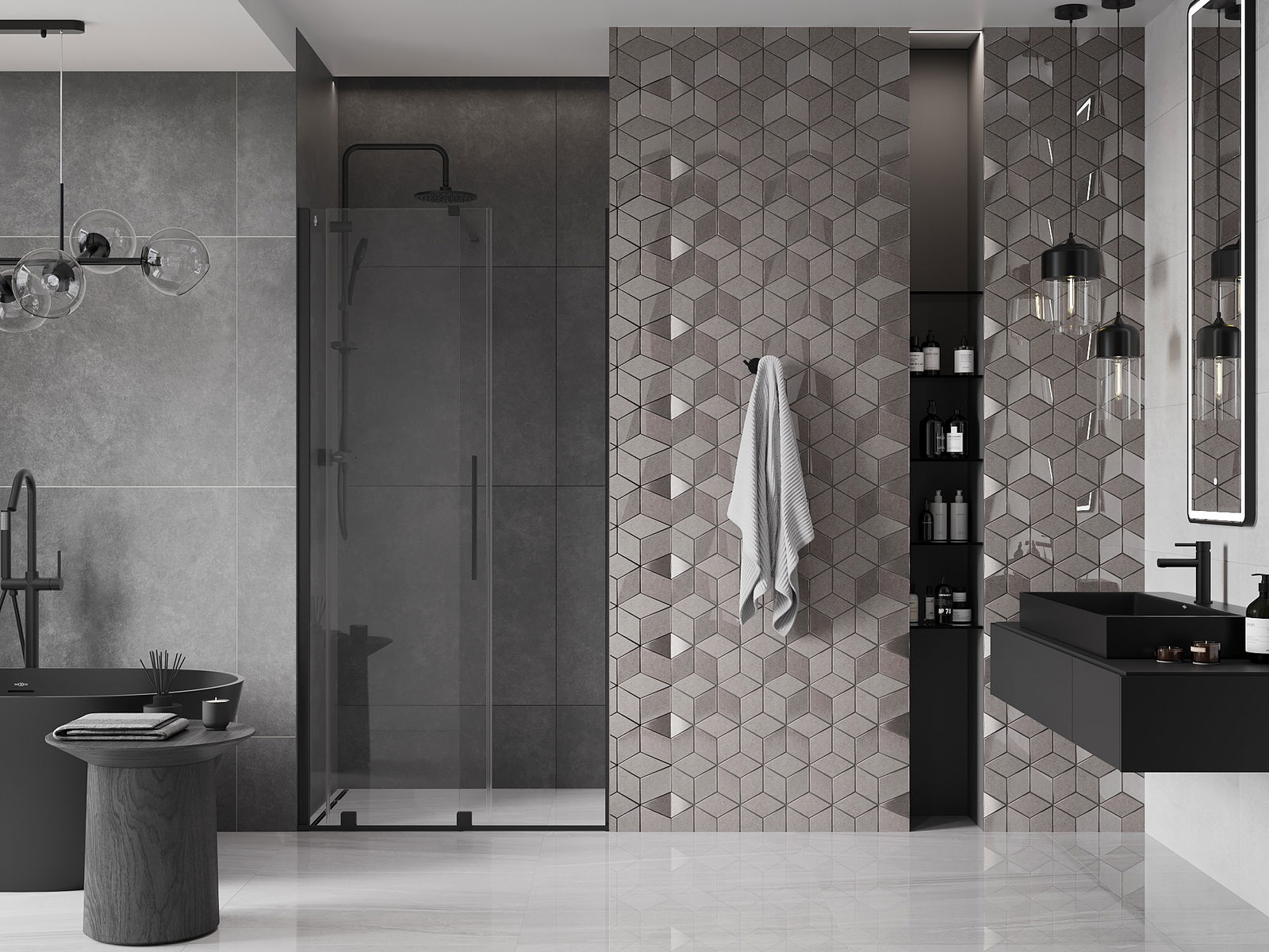 Het handige en comfortabele handvat is gemaakt van roestvrij staal. De modieuze vorm in combinatie met de afwerking die is afgestemd op de kleur van de profielen geeft het geheel een moderne en stijlvolle uitstraling, en benadrukt de esthetiek van elke badkamer.