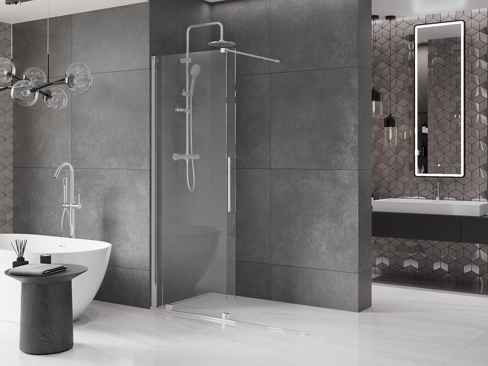 Dankzij het gebruik van een universeel montagesysteem kunnen douchedeuren naar behoefte aan de rechter- of linkerkant worden gemonteerd. Hierdoor kun je gemakkelijk een douche ontwerpen die aan de ruimte in de badkamer is aangepast.