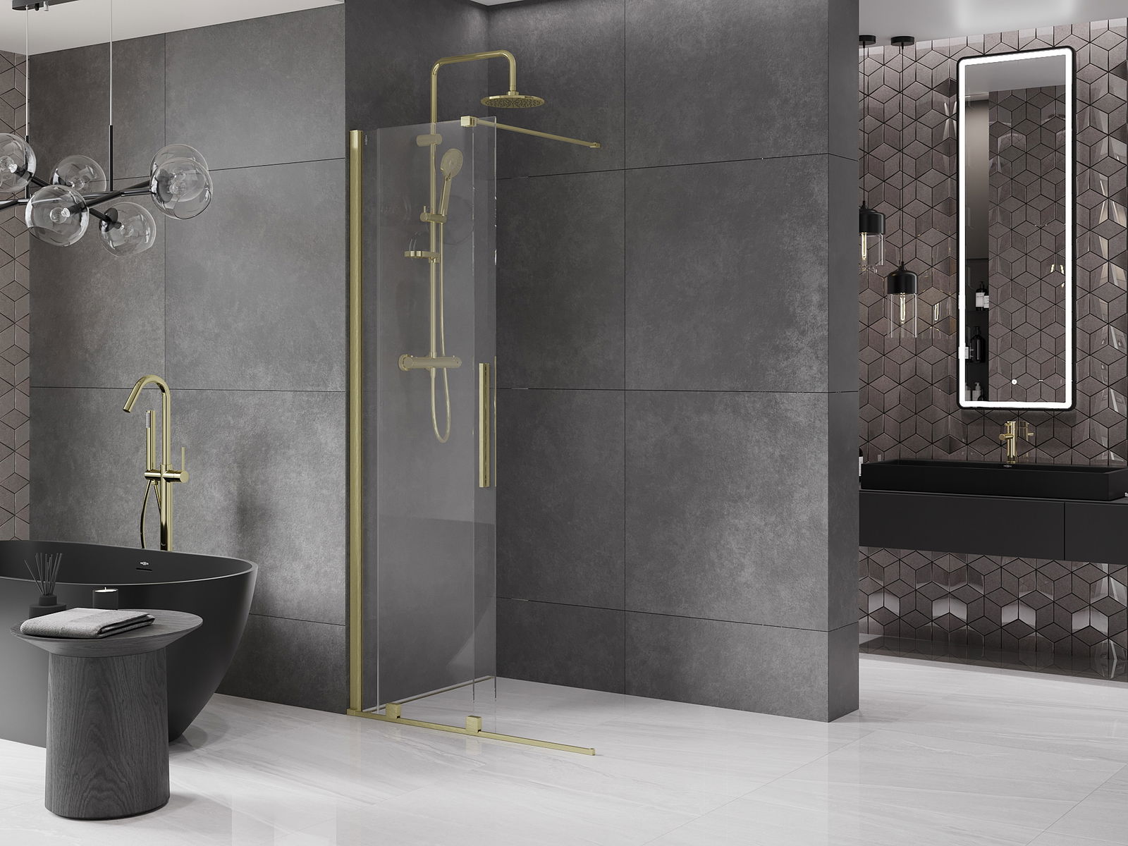 Het handige en comfortabele handvat is gemaakt van roestvrij staal. De modieuze vorm in combinatie met de afwerking die is afgestemd op de kleur van de profielen geeft het geheel een moderne en stijlvolle uitstraling, en benadrukt de esthetiek van elke badkamer.