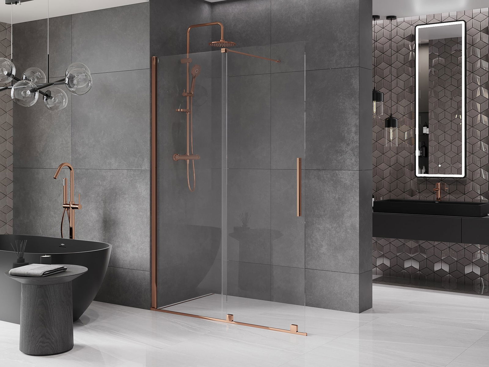 Mexen Velar schuifbare inloopdouchewand 140 x 200 cm, transparant 8 mm, roze goud - 871-140-000-03-60