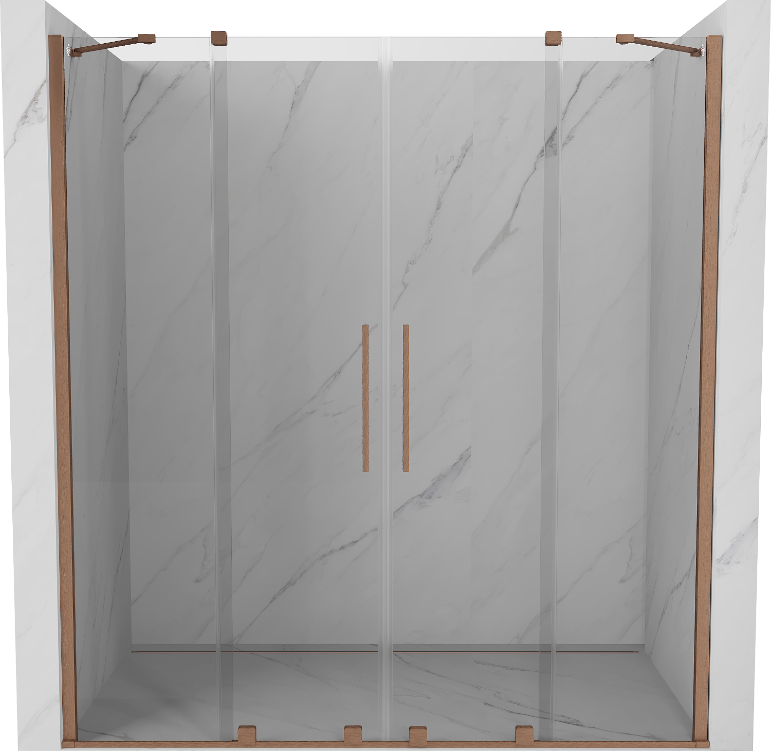 Mexen Velar Duo schuifbare douchedeuren 200 cm, transparant, geborsteld koper - 871-200-000-02-65