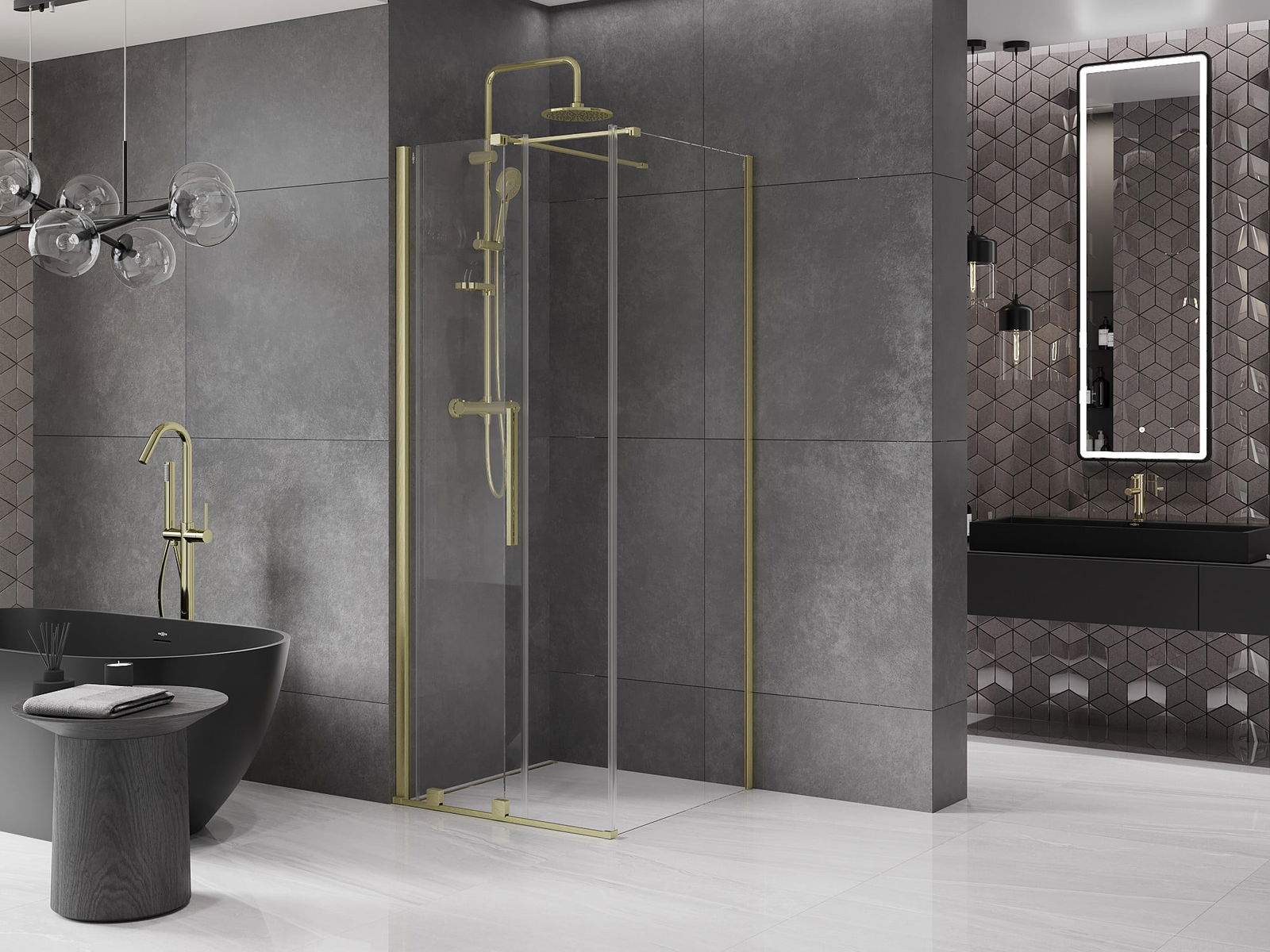 Het handige en comfortabele handvat is gemaakt van roestvrij staal. De modieuze vorm in combinatie met de afwerking die is afgestemd op de kleur van de profielen geeft het geheel een moderne en stijlvolle uitstraling, en benadrukt de esthetiek van elke badkamer.