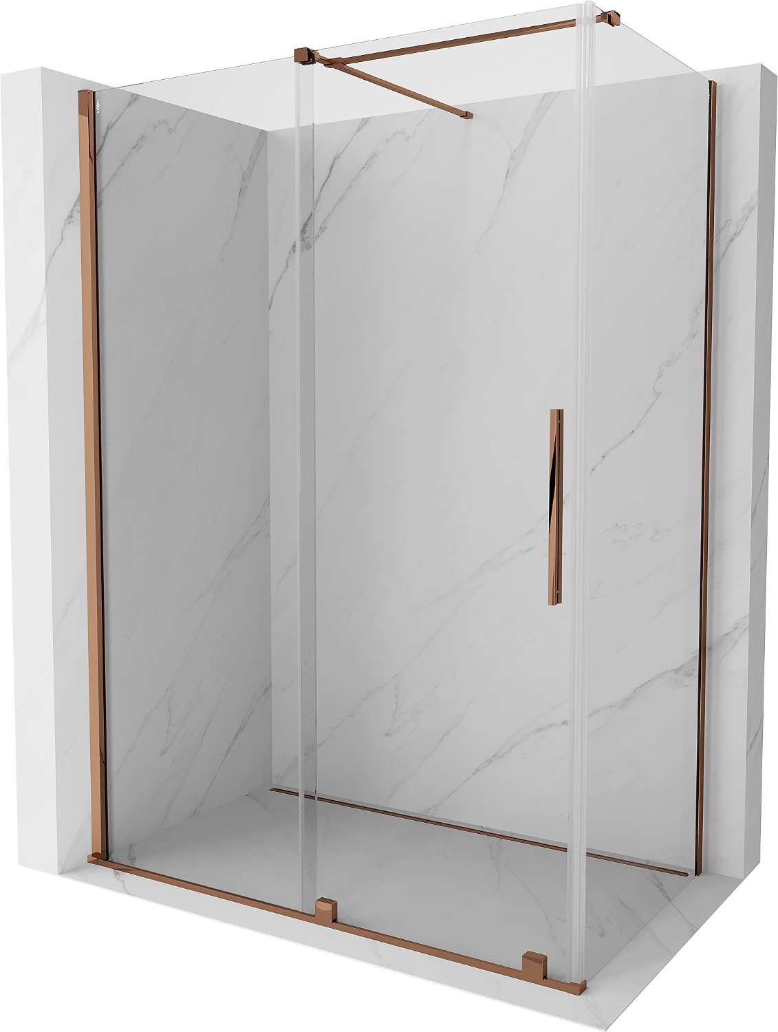 Mexen Velar schuifdouchecabine 150 x 80 cm, transparant, roze goud - 871-150-080-01-60