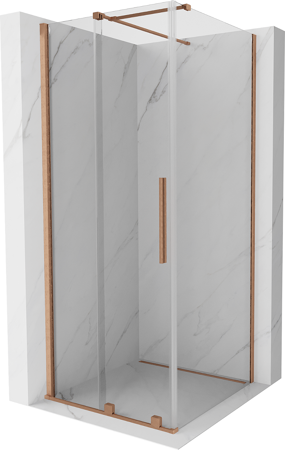 Mexen Velar douchecabine schuifdeur 120 x 120 cm, transparant, geborsteld koper - 871-120-120-01-65