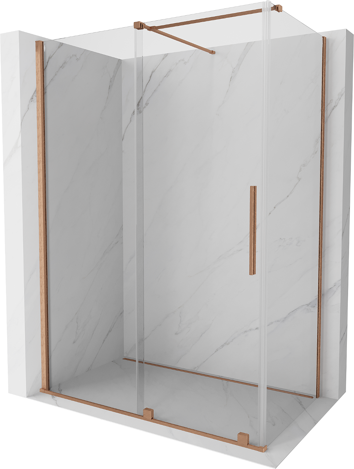 Mexen Velar schuifbare douchecabine 160 x 75 cm, transparant, geborsteld koper - 871-160-075-01-65