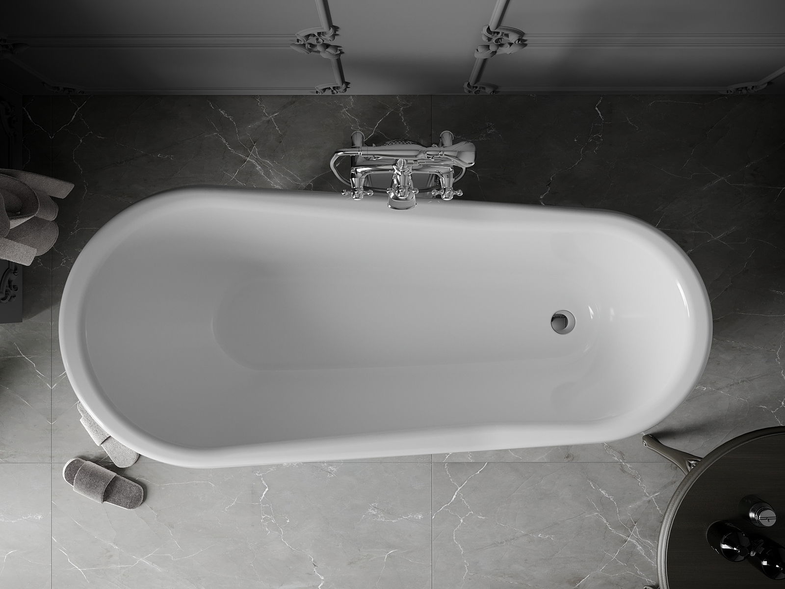 Het bad is voorzien van verstelbare poten, waardoor het bad waterpas staat, zelfs op oneffen oppervlakken. Deze praktische oplossing zorgt voor meer stabiliteit en veiligheid tijdens gebruik, en is bovendien eenvoudig te installeren.