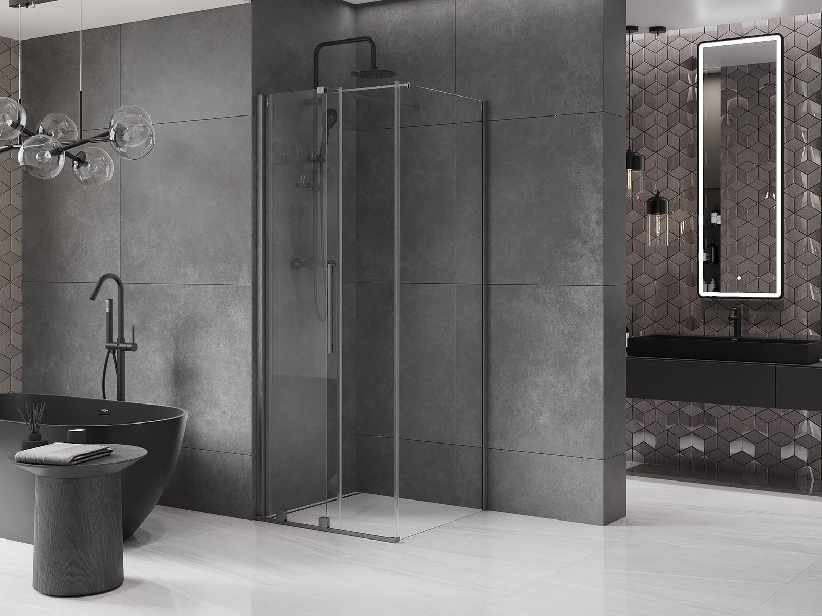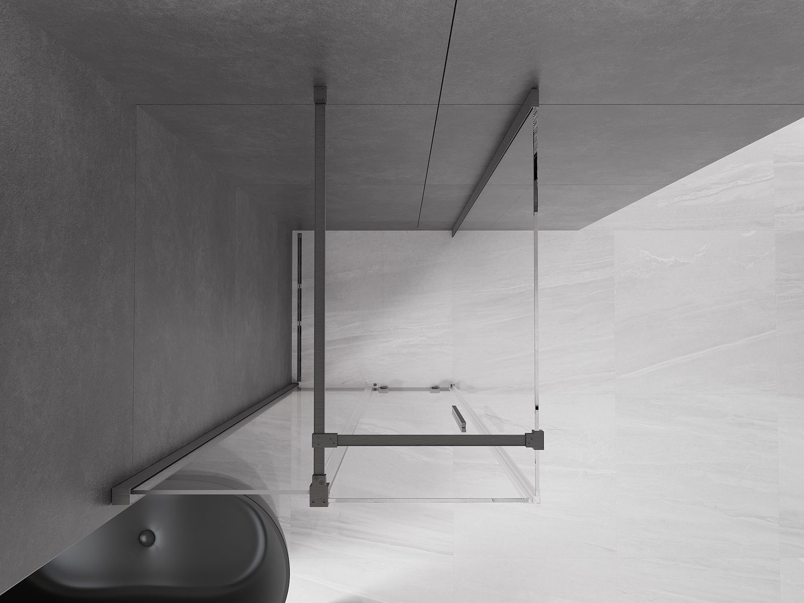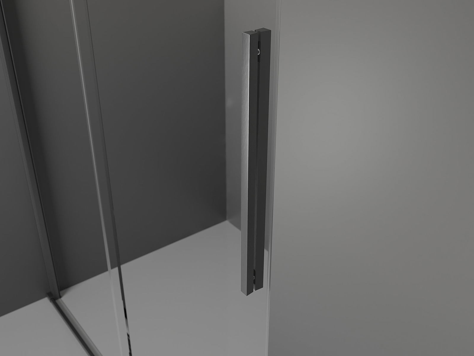 Het handige en comfortabele handvat is gemaakt van roestvrij staal. De modieuze vorm in combinatie met de afwerking die is afgestemd op de kleur van de profielen geeft het geheel een moderne en stijlvolle uitstraling, en benadrukt de esthetiek van elke badkamer.