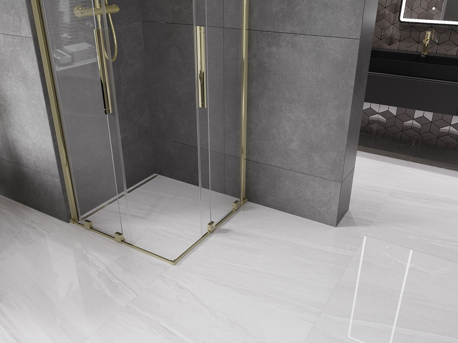 Mexen Velar Duo schuifdouchecabine 100 x 100 cm, transparant, goud - 871-100-100-02-50