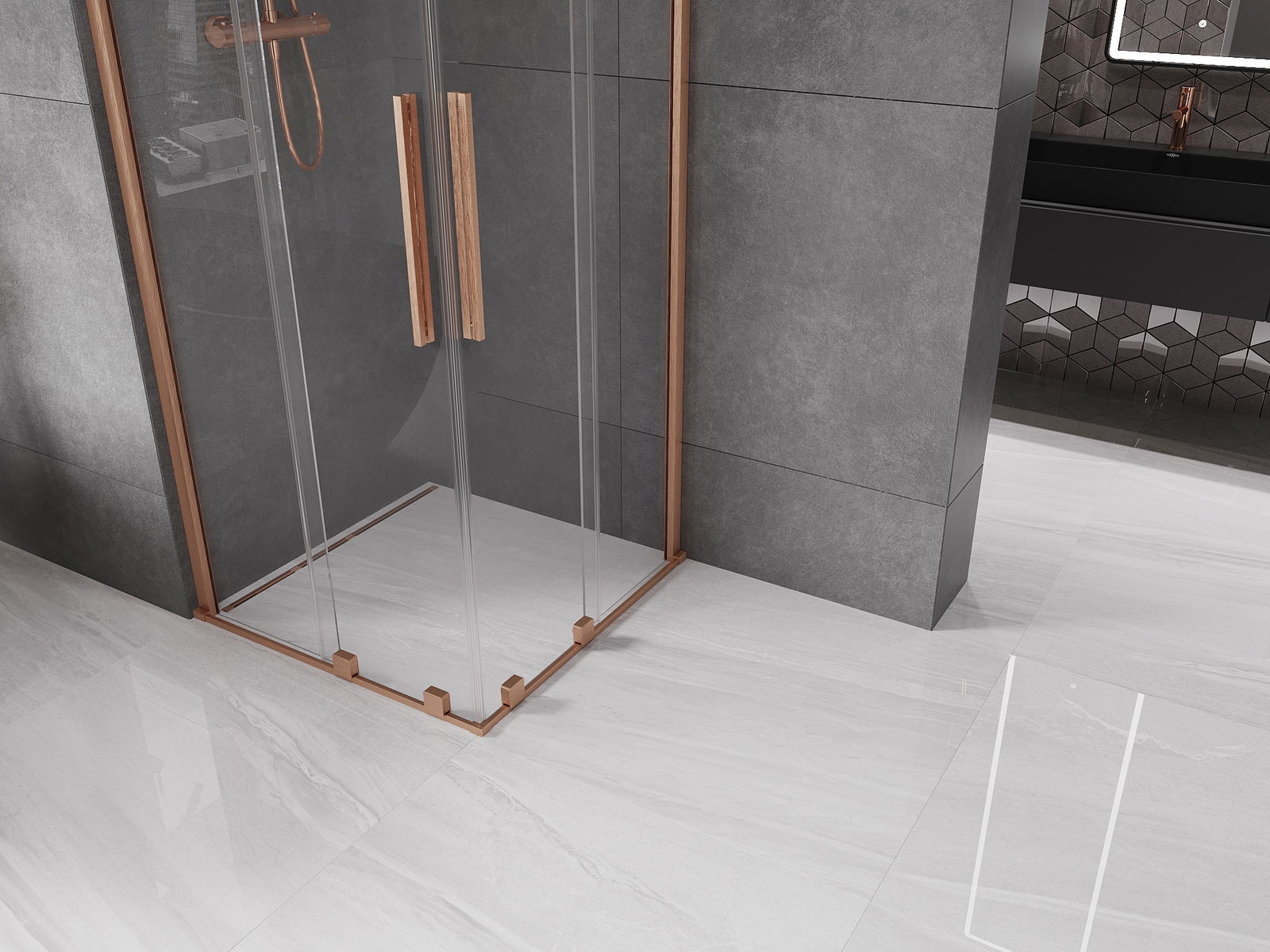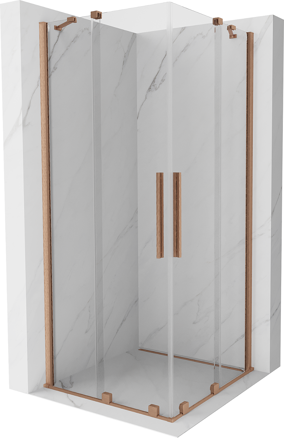 Mexen Velar Duo schuifdouchecabine 90 x 90 cm, transparant, geborsteld koper - 871-090-090-02-65