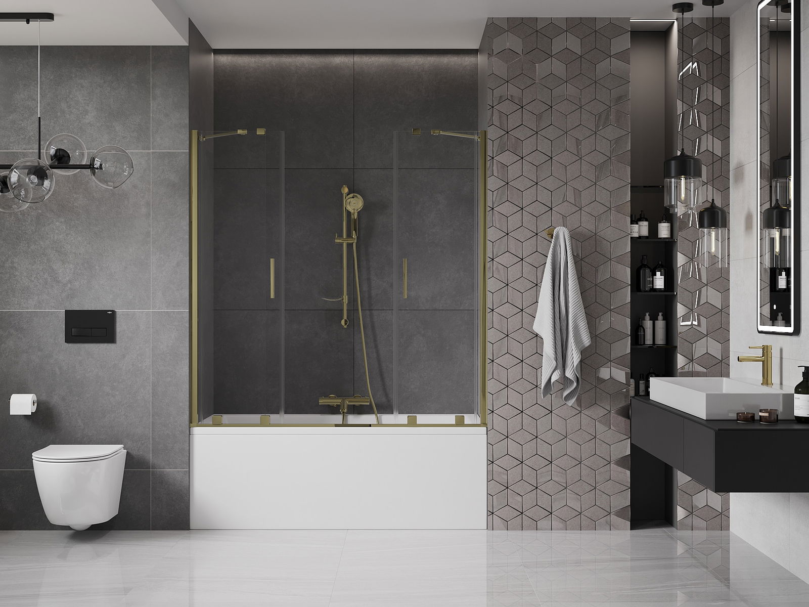 Mexen Velar Duo badwand met 2 schuifpanelen 140 x 150 cm, transparant, goud - 896-140-000-02-50