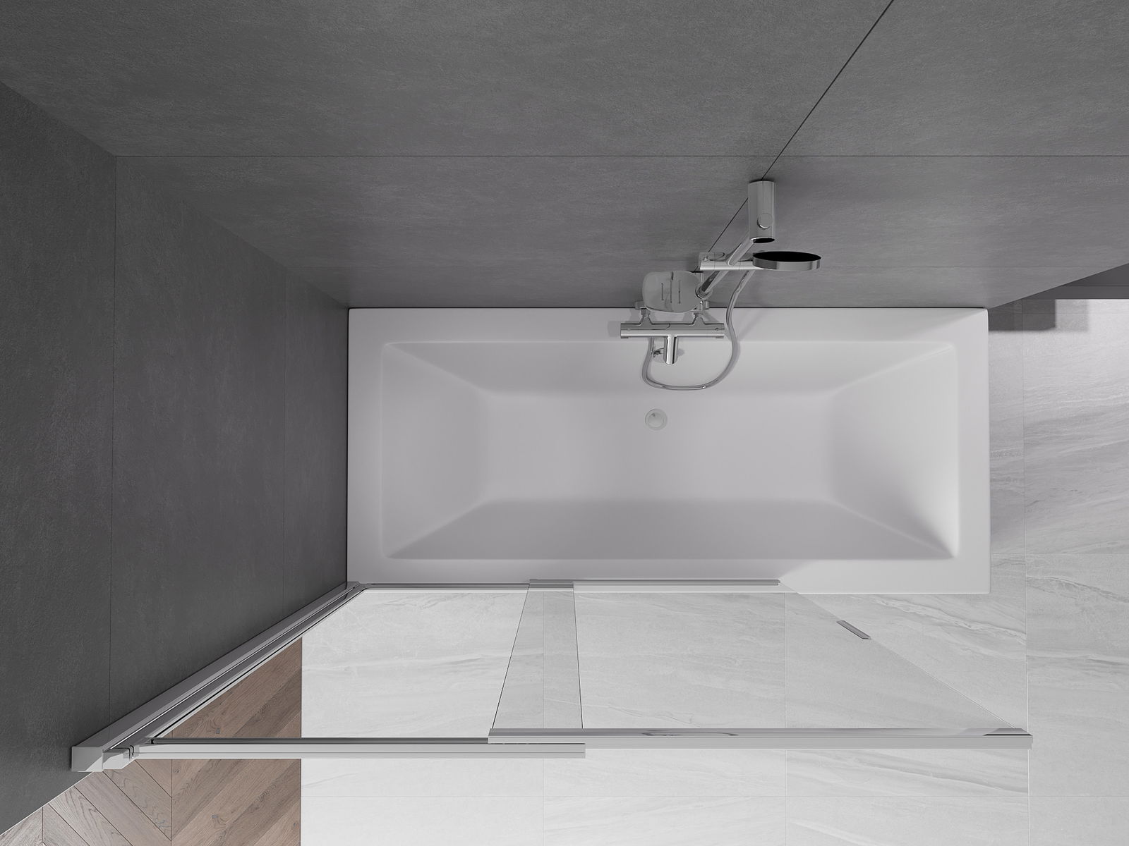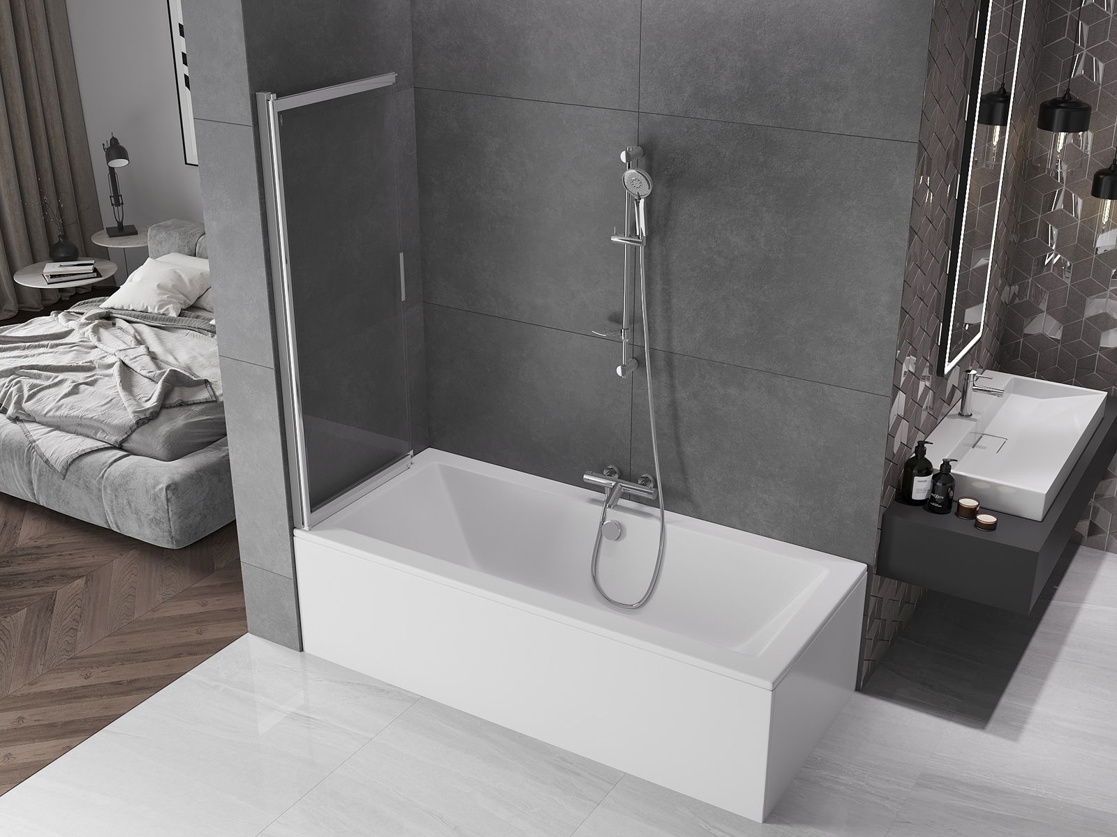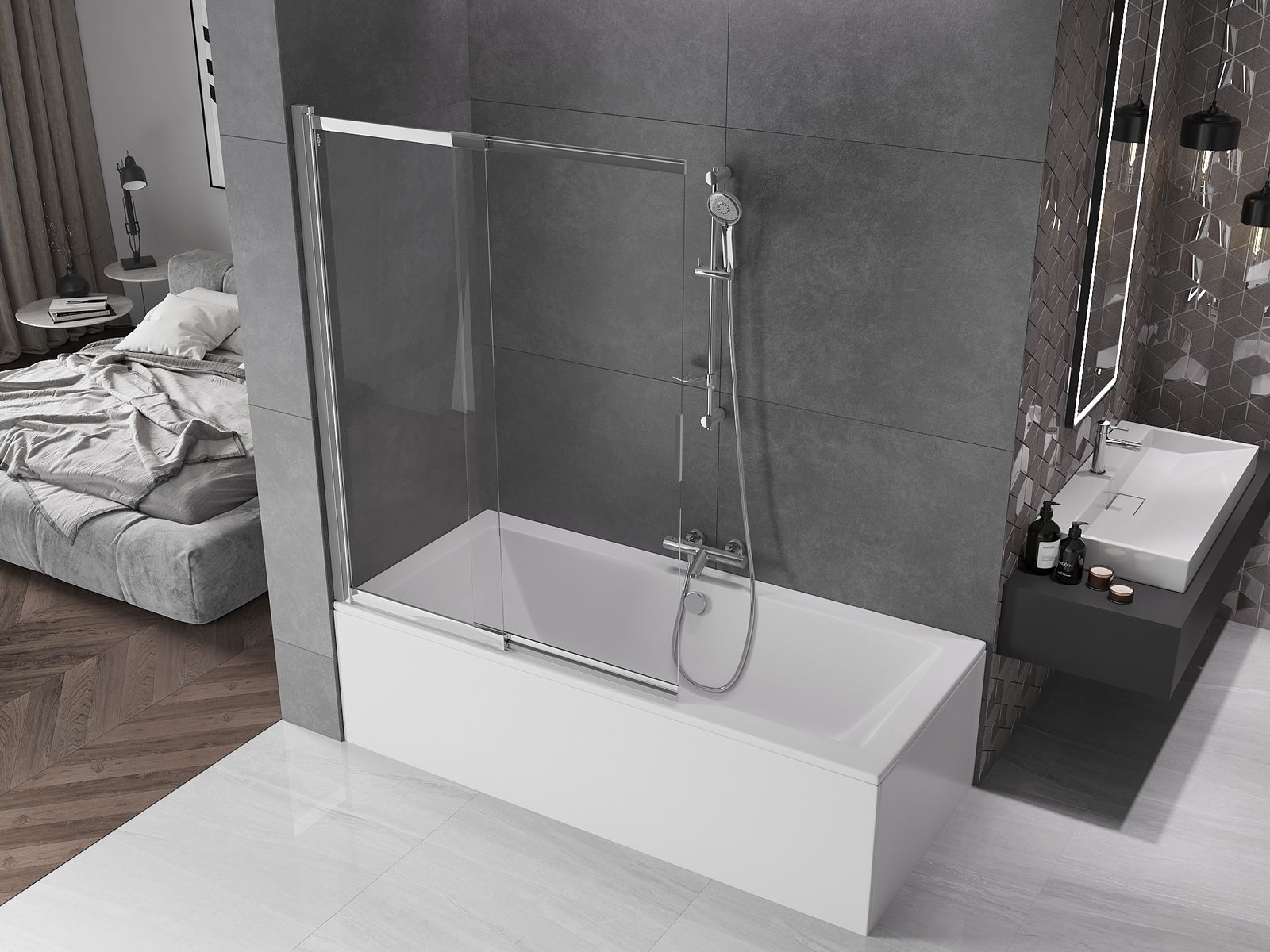 Dankzij het gebruik van een universeel montagesysteem kan het scherm naar behoefte aan de rechter- of linkerkant worden gemonteerd. Op deze manier kun je gemakkelijk een douche ontwerpen die bij de badkamer past.