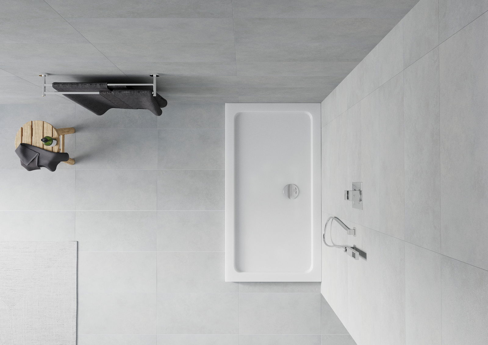 De douchebak is zo ontworpen dat het water vrij naar de afvoer kan stromen. Dit zorgt voor een snelle en efficiënte afvoer van het oppervlak van de douchebak, waardoor plassen en overstromingen in de badkamer worden voorkomen.