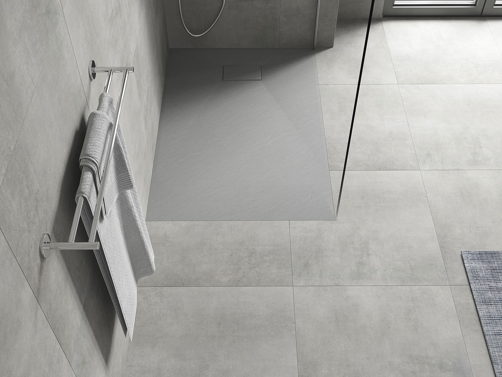 Het oppervlak van de douchebak doet met zijn structuur denken aan steen. Het vormt een uitzonderlijke combinatie van een natuurlijke uitstraling met een moderne interieurinrichting. Het voegt karakter toe, benadrukt de esthetiek en elegantie van de badkamerinrichting en verrast met zijn vorm.