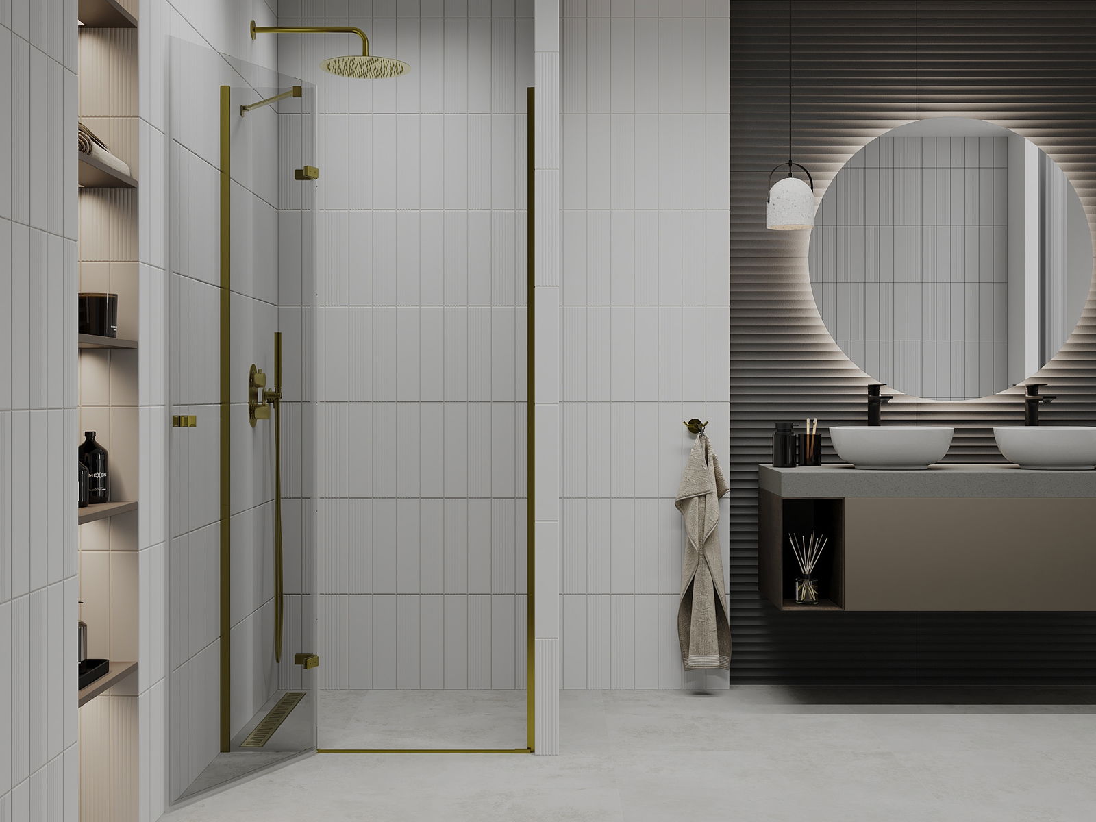 Mexen Roma scharnierend douchedeur 70 cm, transparant, goud - 854-070-000-50-00