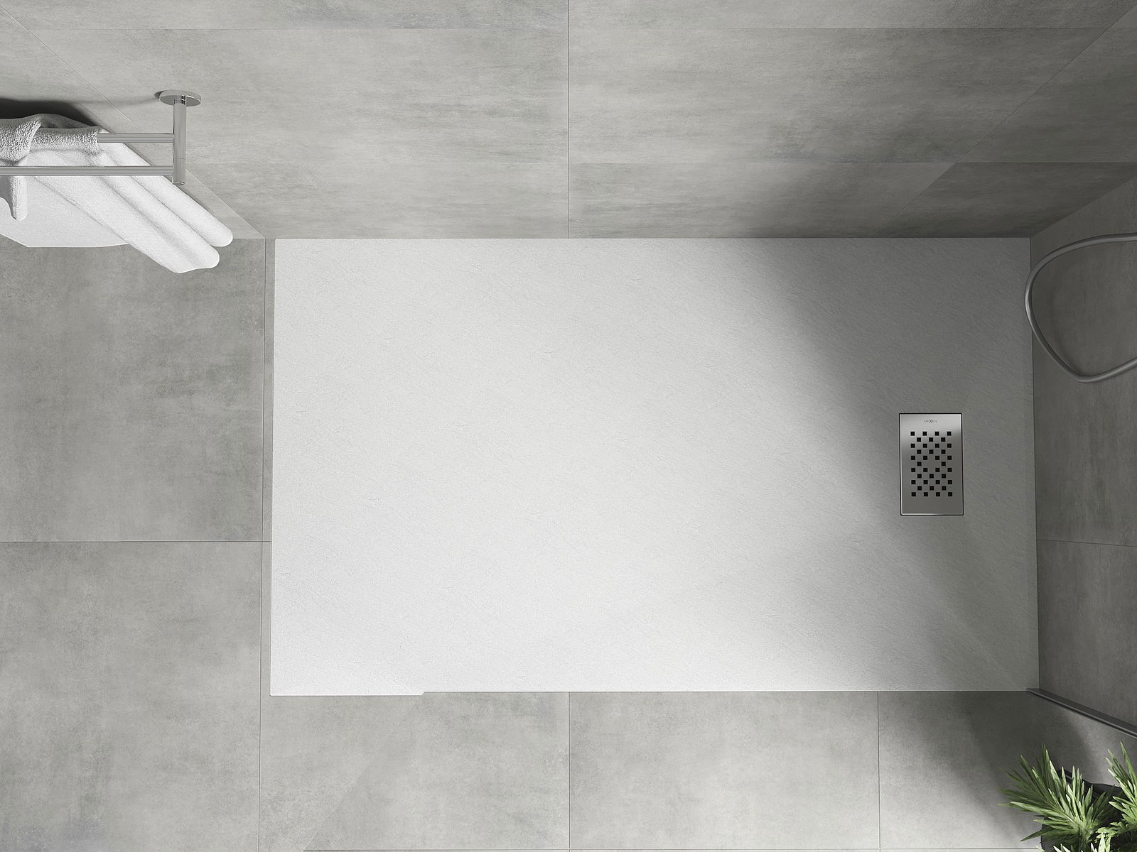 De douchebak is zo ontworpen dat het water vrij kan weglopen in de richting van de afvoer. Het zorgt voor een snelle en efficiënte afvoer van water van het oppervlak van de douchebak, waardoor het ontstaan van plassen en het overstromen van de badkamer wordt voorkomen.