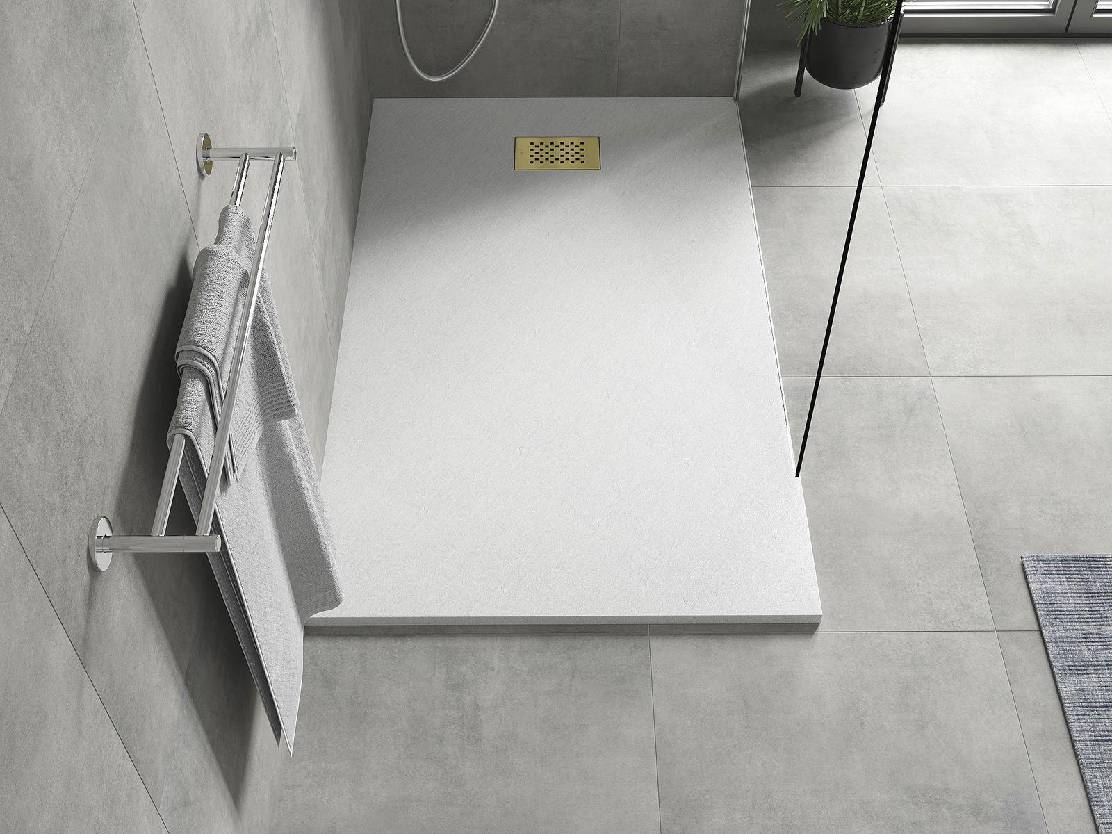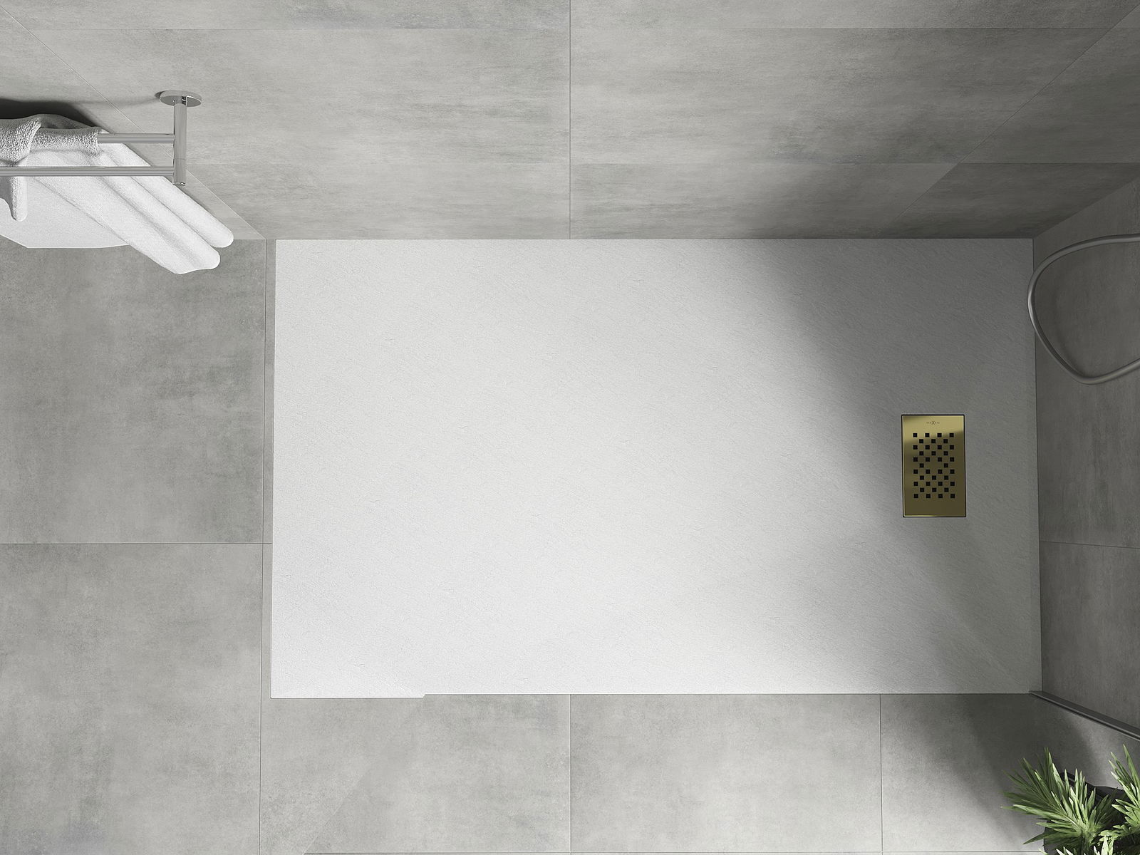 De douchebak is zo ontworpen dat het water vrij kan weglopen in de richting van de afvoer. Het zorgt voor een snelle en efficiënte afvoer van water van het oppervlak van de douchebak, waardoor het ontstaan van plassen en het overstromen van de badkamer wordt voorkomen.