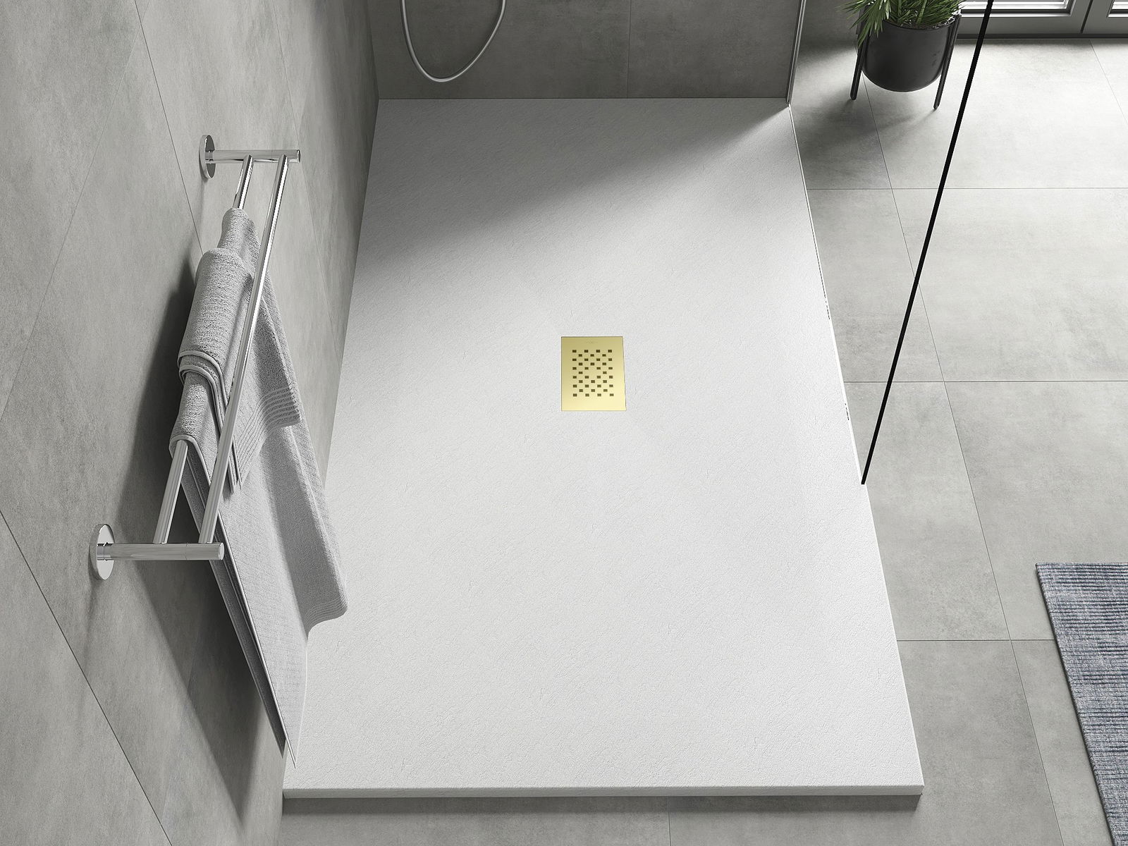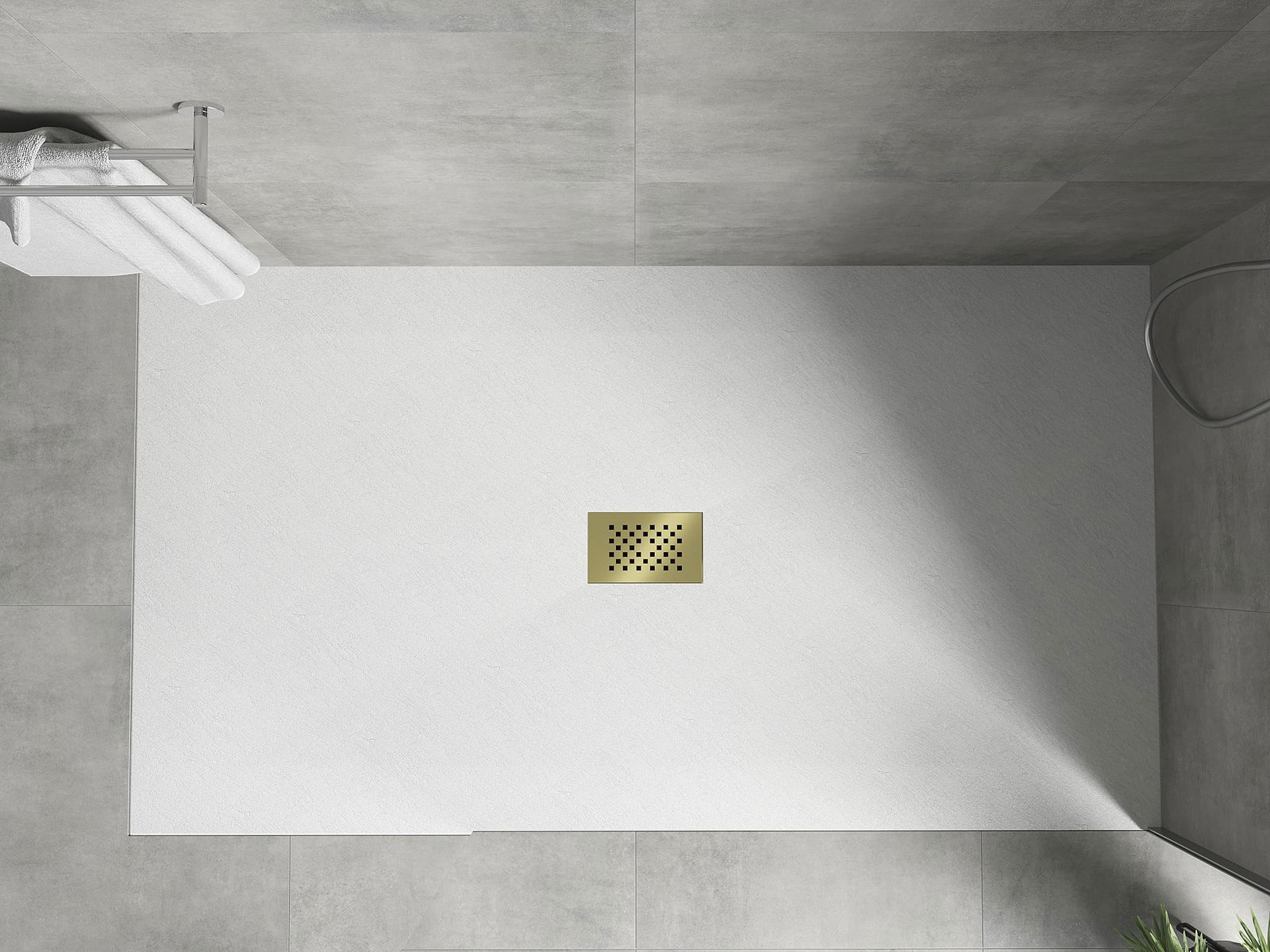 De douchebak is zo ontworpen dat het water vrij kan weglopen in de richting van de afvoer. Het zorgt voor een snelle en efficiënte afvoer van water van het oppervlak van de douchebak, waardoor het ontstaan van plassen en het overstromen van de badkamer wordt voorkomen.