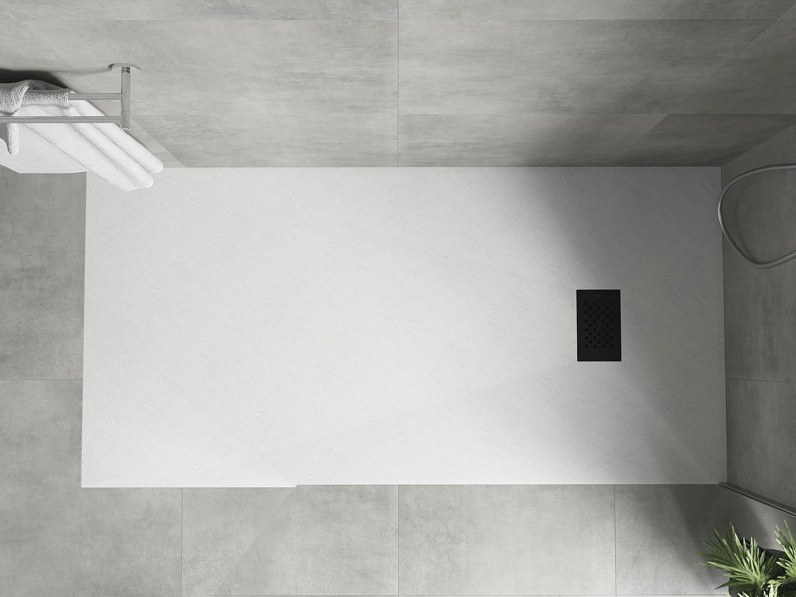 De douchebak is zo ontworpen dat het water vrij kan weglopen in de richting van de afvoer. Het zorgt voor een snelle en efficiënte afvoer van water van het oppervlak van de douchebak, waardoor het ontstaan van plassen en het overstromen van de badkamer wordt voorkomen.