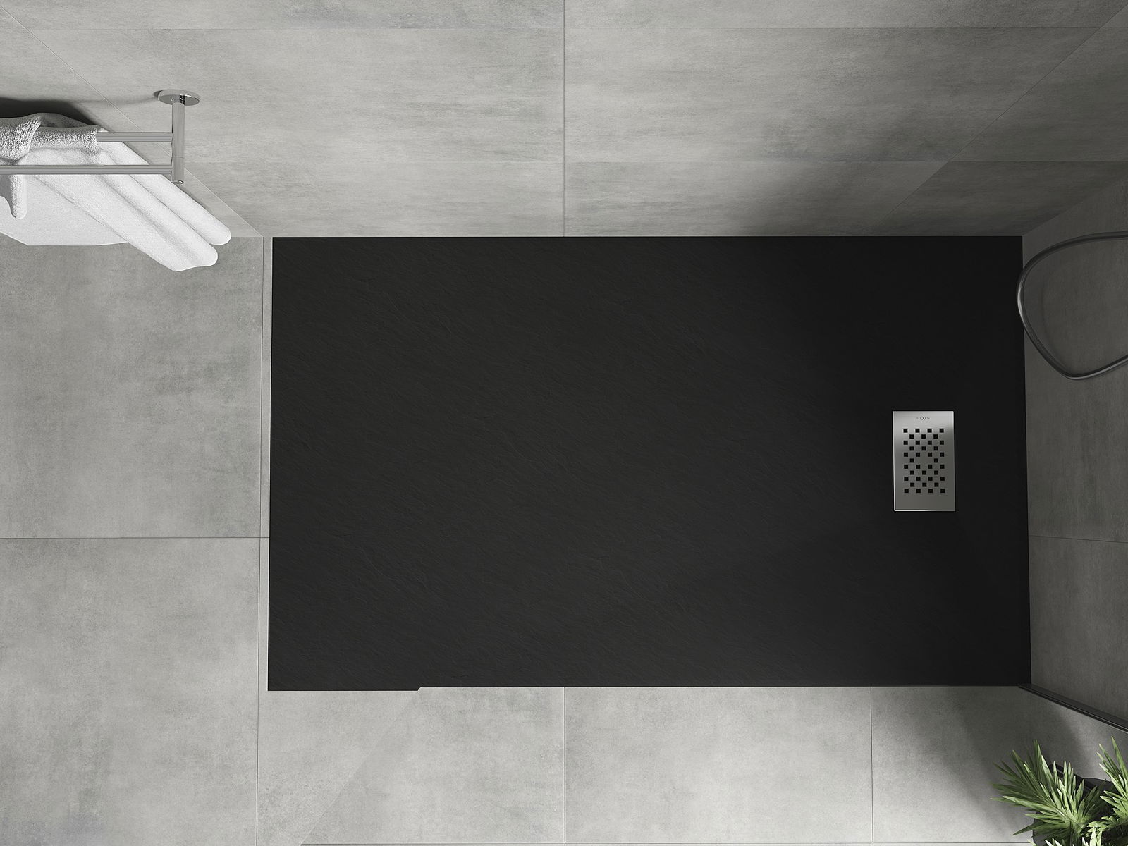 Mexen Hugo rechthoekige SMC douchebak 160 x 80 cm, zwart, inox afdekplaat - 42708016-X