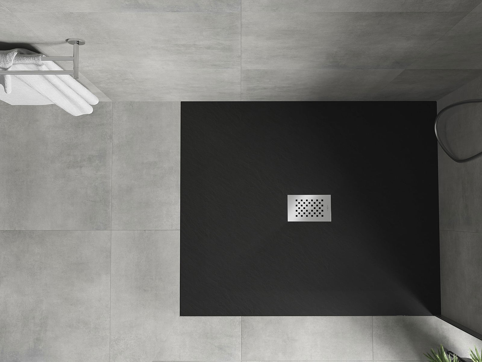 De douchebak is zo ontworpen dat het water vrij kan weglopen in de richting van de afvoer. Het zorgt voor een snelle en efficiënte afvoer van water van het oppervlak van de douchebak, waardoor het ontstaan van plassen en het overstromen van de badkamer wordt voorkomen.