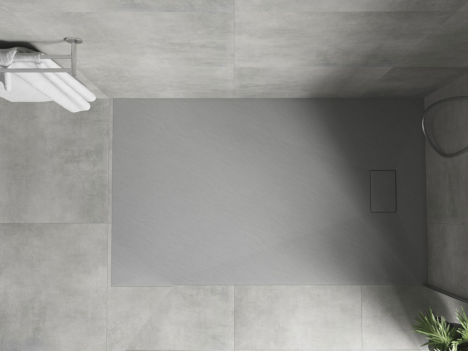 De douchebak is zo ontworpen dat het water vrij kan weglopen in de richting van de afvoer. Het zorgt voor een snelle en efficiënte afvoer van water van het oppervlak van de douchebak, waardoor het ontstaan van plassen en het overstromen van de badkamer wordt voorkomen.