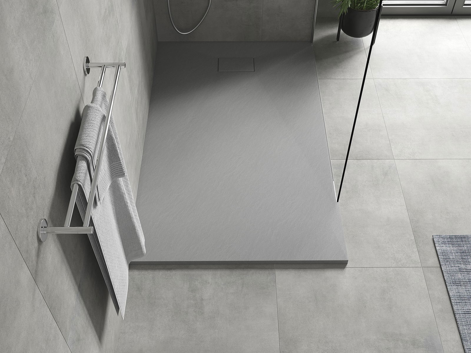 Het oppervlak van de douchebak doet met zijn structuur denken aan steen. Het vormt een uitzonderlijke combinatie van een natuurlijke uitstraling met een moderne interieurinrichting. Het voegt karakter toe, benadrukt de esthetiek en elegantie van de badkamerinrichting en verrast met zijn vorm.