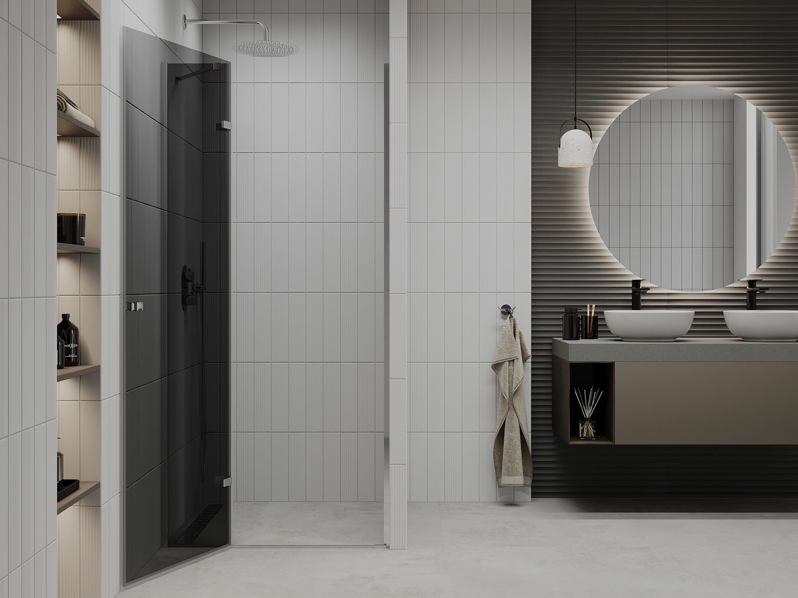 Handige en comfortabele greep is gemaakt van duurzaam en weerbestendig metaal. De modieuze vorm in combinatie met een afwerking die past bij de kleur van de profielen geeft het geheel een moderne en stijlvolle uitstraling, wat de esthetiek van elke badkamer benadrukt.