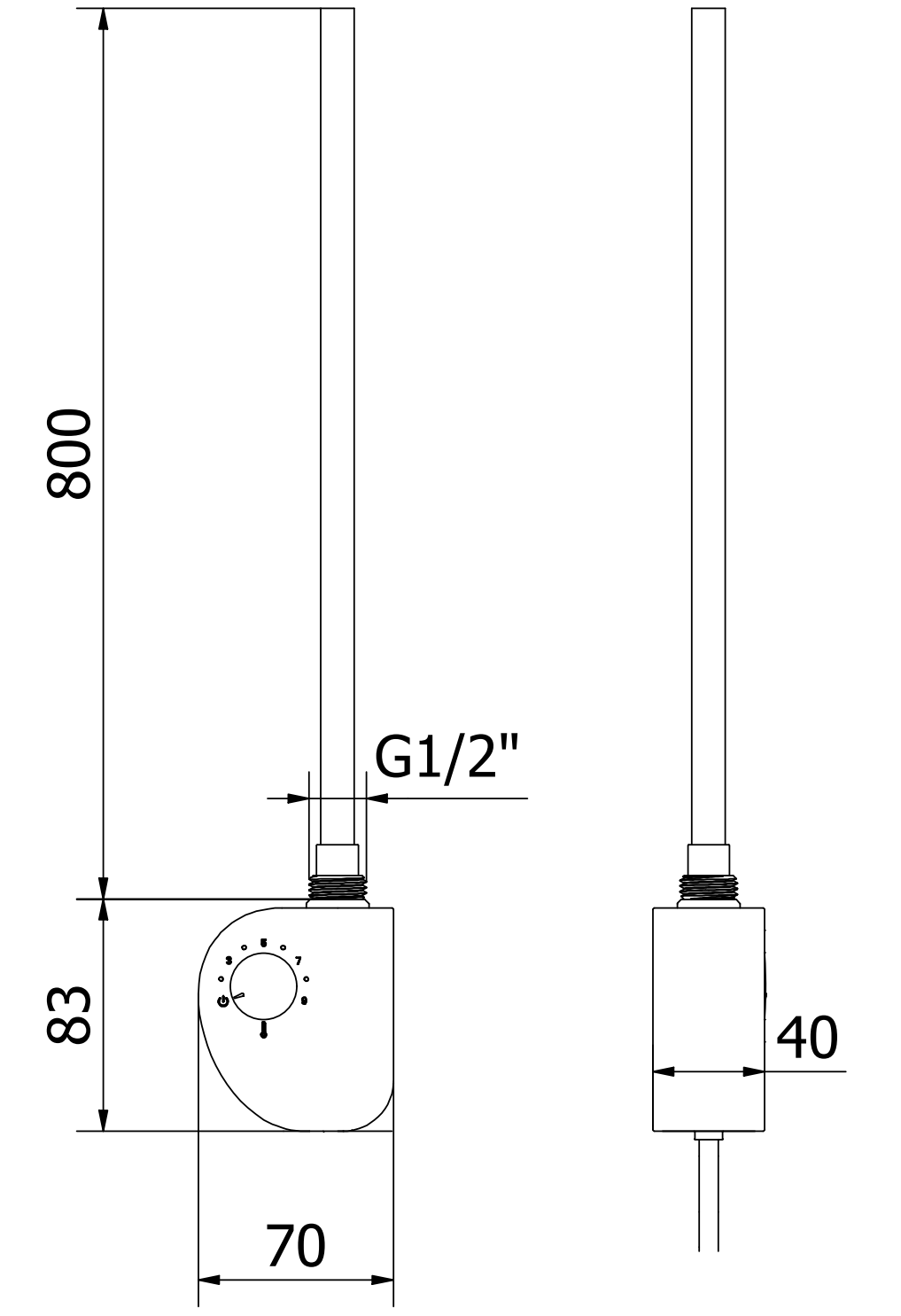 Lengte verwarmingselement: 800 mm