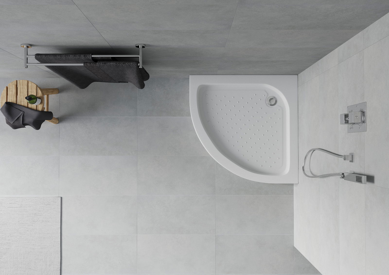 De Mexen Rio is een kwartronde douchebak met afmetingen van 70 x 70 cm, gemaakt van hoogwaardig sanitair acryl. De elegante witte kleur en glanzende afwerking passen perfect in moderne badkamers. Dankzij de versterkte constructie is de douchebak uiterst duurzaam en bestand tegen beschadigingen. De set bevat een sifon die van bovenaf gereinigd kan worden en een eenvoudig te installeren afvoer met een diameter van 50 mm, wat gebruikscomfort garandeert. Ideale keuze voor mensen die op zoek zijn naar functionele en esthetische oplossingen.