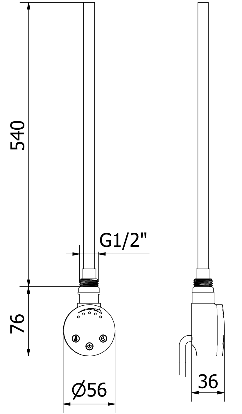 Lengte van het verwarmingselement: 540 mm