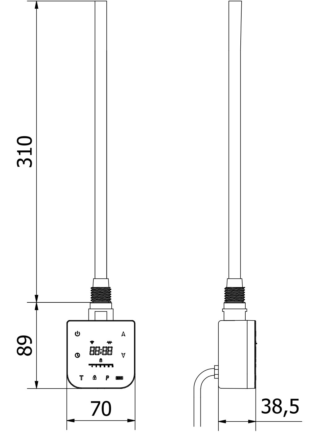 Lengte van het verwarmingselement: 310 mm