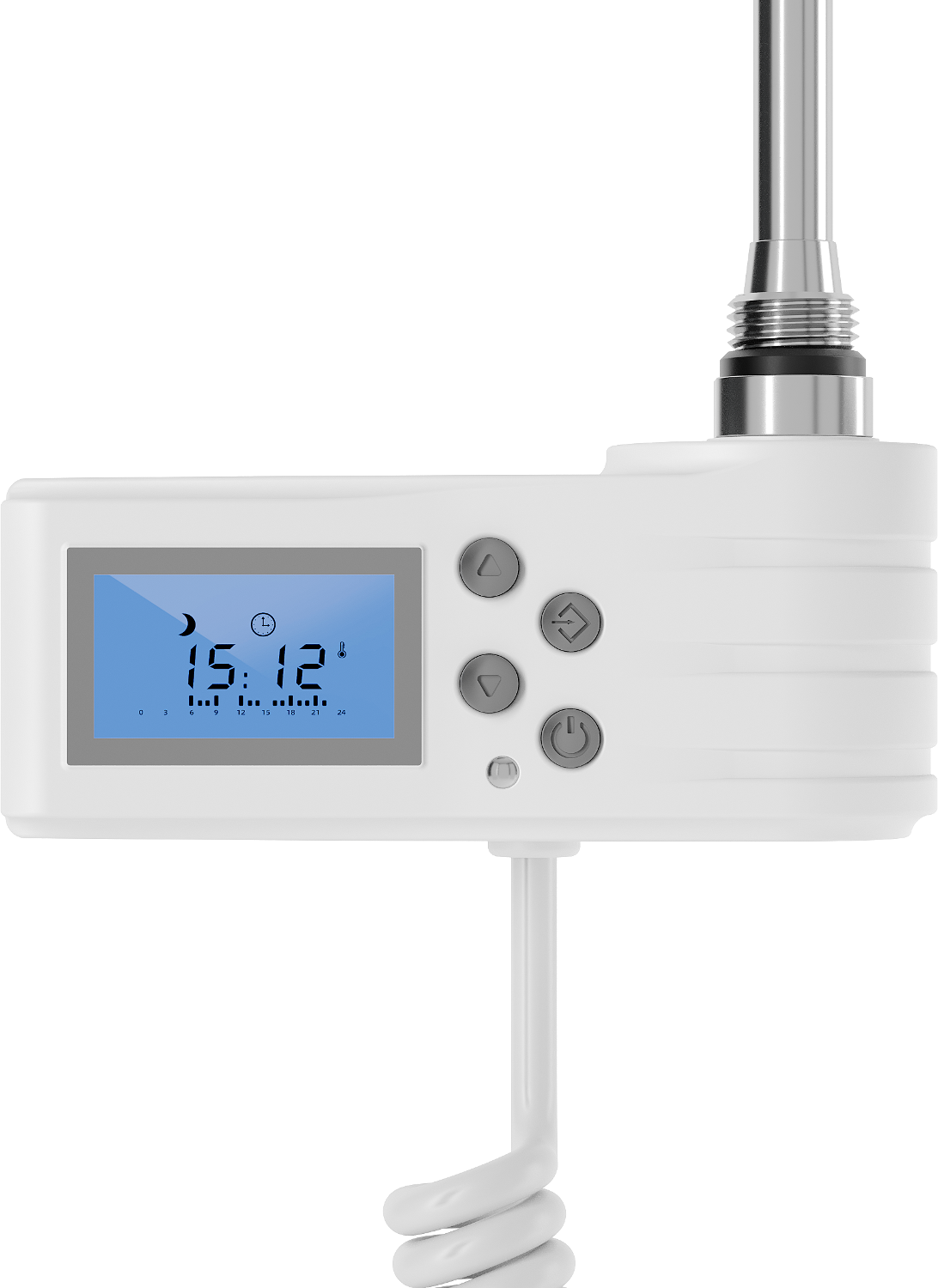 Mexen elektrische verwarmingselement 450 W (wit) is een efficiënte en moderne oplossing voor uw badkamer. Het heeft een totale lengte van 490 mm en een verwarmingselement van 415 mm. Het verwarmingselement werkt op een spanning van 230V/50Hz en biedt een vermogen van 450 W. De witte kleur past perfect bij elk interieur. Uitgerust met een LED-display, ouderlijk slot en functies zoals Sensitive, Comfort, Smart, ECO en Anti-vorst. Beschermingsgraad IP44 en extra beveiliging tegen drooglopen garanderen veiligheid en gebruiksgemak.