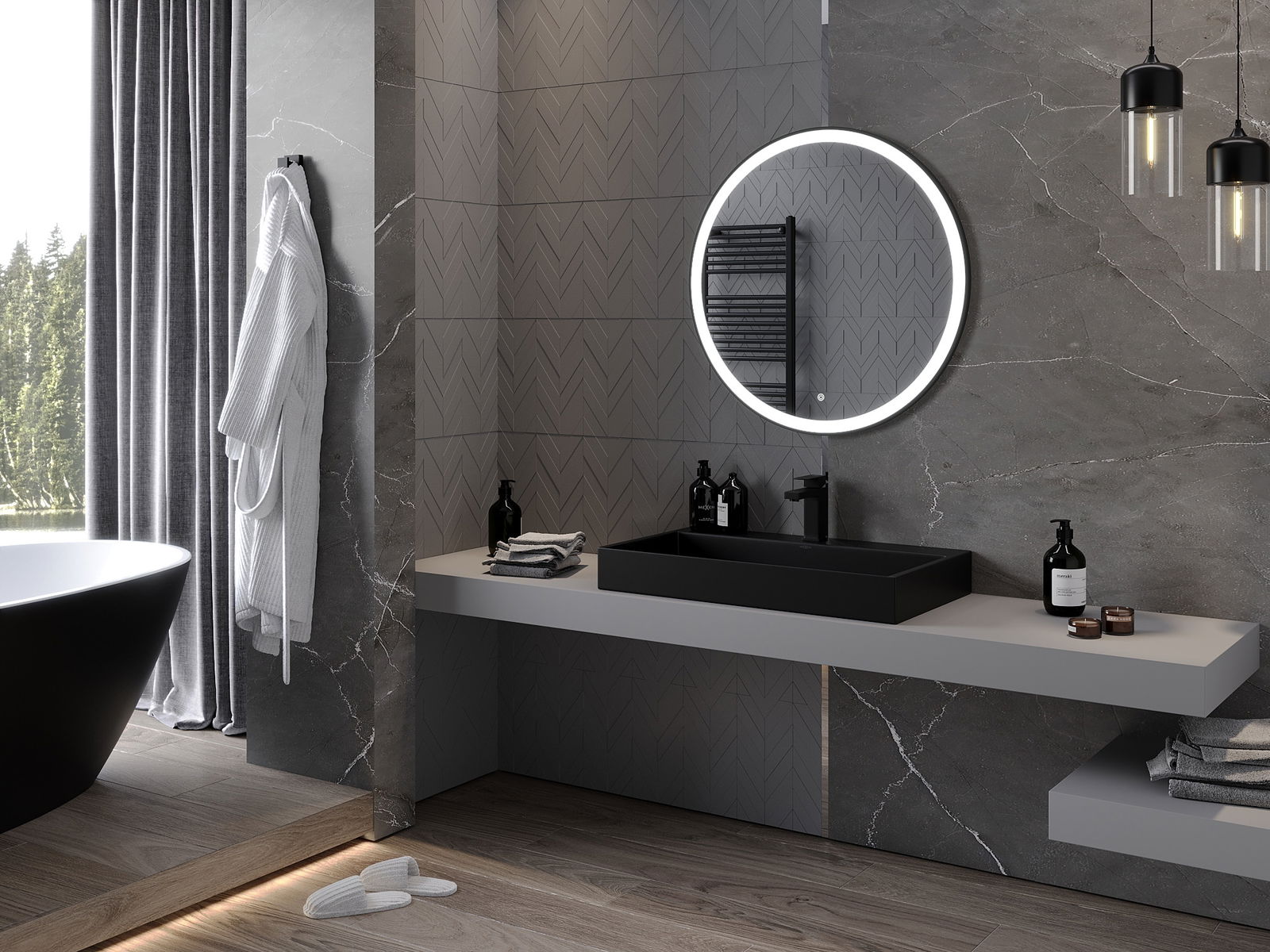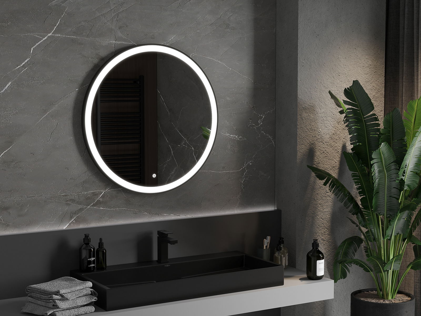 Mexen Esso verlichte badkamer spiegel, rond 80 cm, LED 6000K, anti-condens, zwarte rand - 9825-080-080-611-70