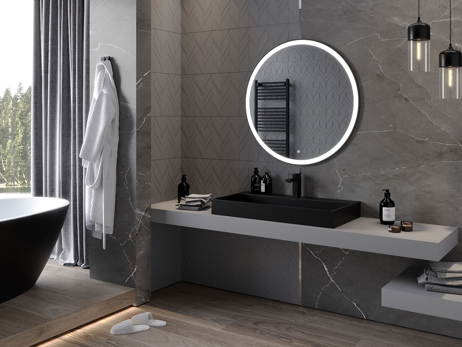 Mexen Esso verlichte badkamerspiegel, rond 90 cm, LED 6000K, anti-condens, zwarte lijst - 9825-090-090-611-70