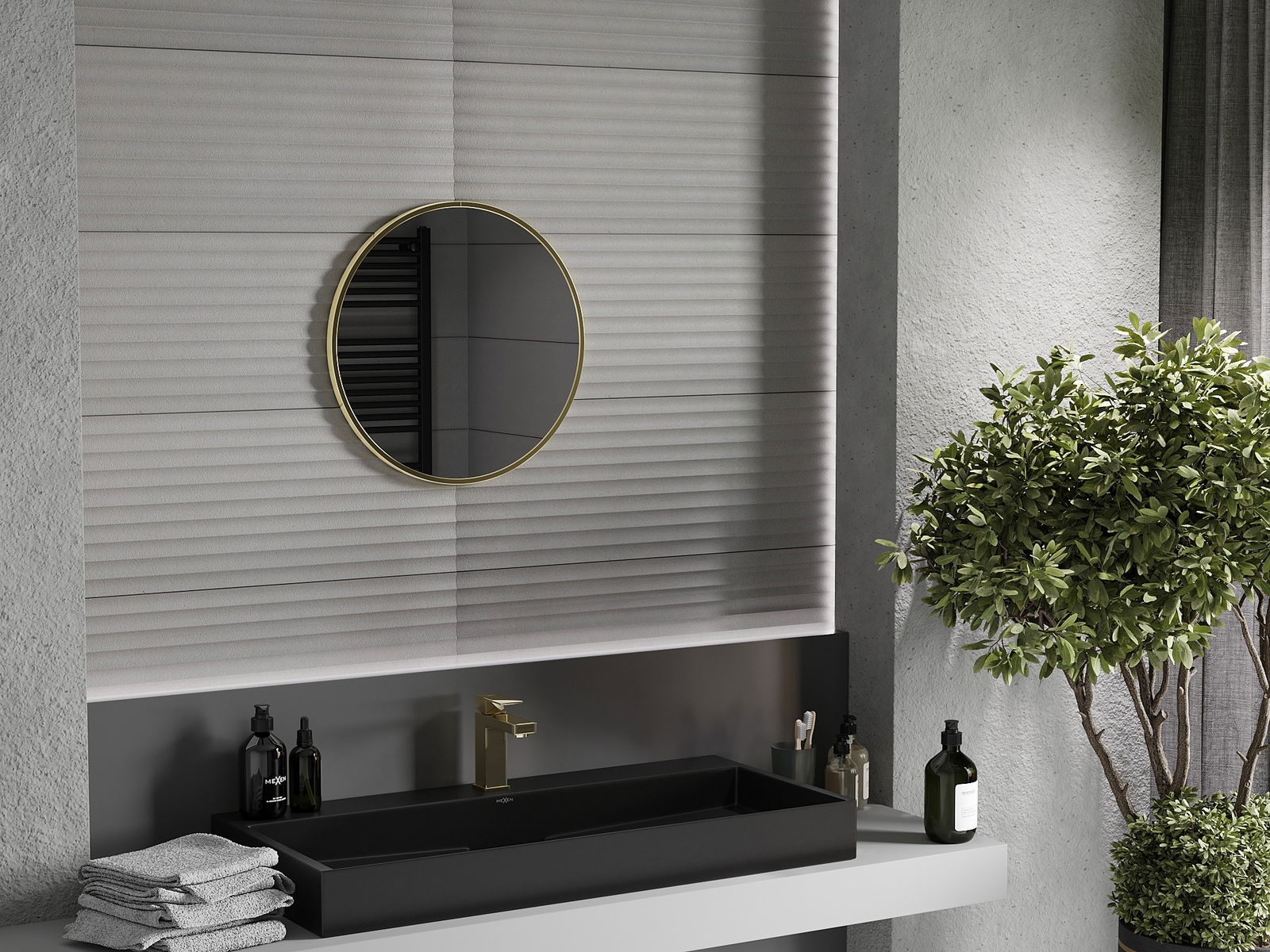 Mexen Loft ronde badkamerspiegel 35 cm, gouden frame - 9850-035-035-000-50