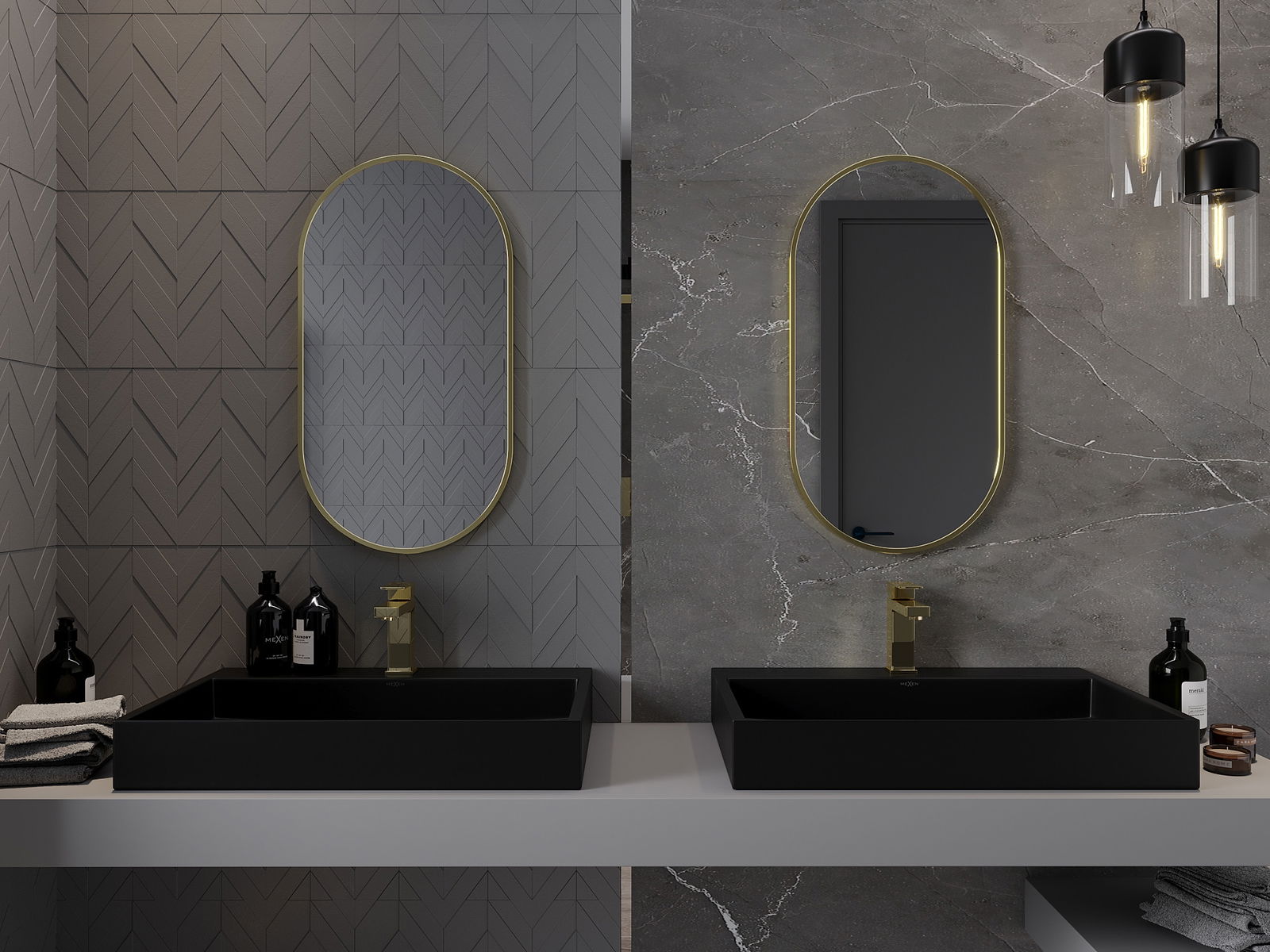 Mexen Loft ovale badkamerspiegel 75 x 40 cm, gouden frame - 9851-075-040-000-50