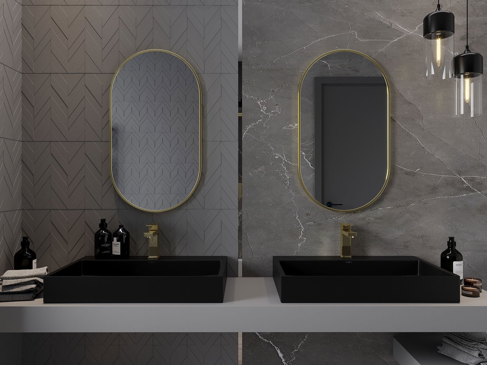 Mexen Loft ovale badkamer spiegel 80 x 45 cm, gouden frame - 9851-080-045-000-50