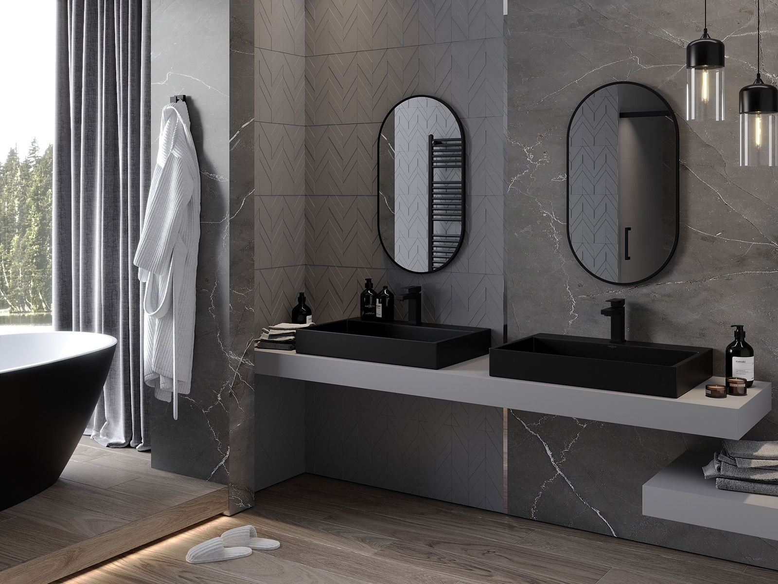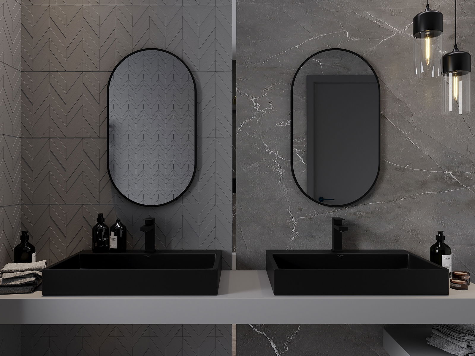 Mexen Loft ovale badkamerspiegel 80 x 45 cm, zwarte lijst - 9851-080-045-000-70