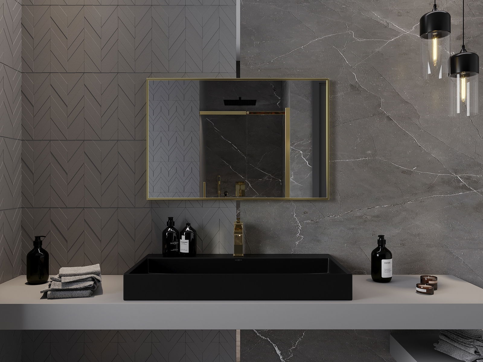 Mexen Loft rechthoekige badkamer spiegel 90 x 60 cm, gouden frame - 9852-090-060-000-50
