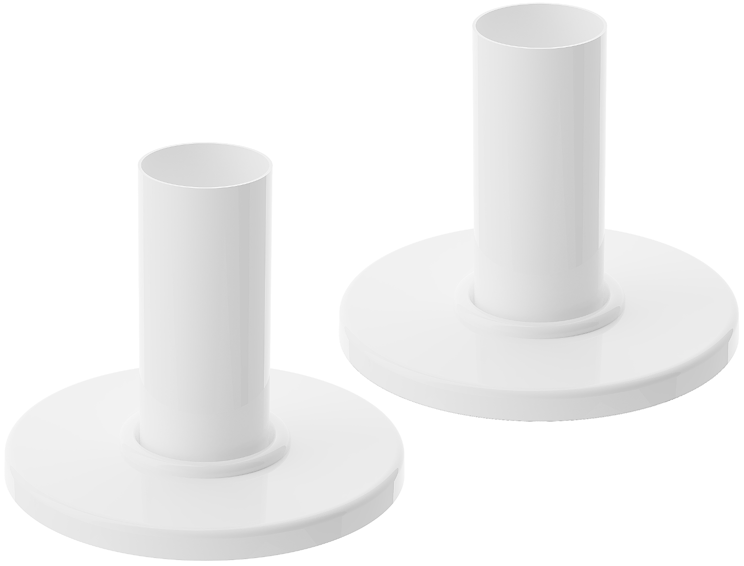 De afdekset bestaat uit twee enkele rozetten en hulzen die bedoeld zijn voor de installatie van thermostatische sets en radiatorkranen