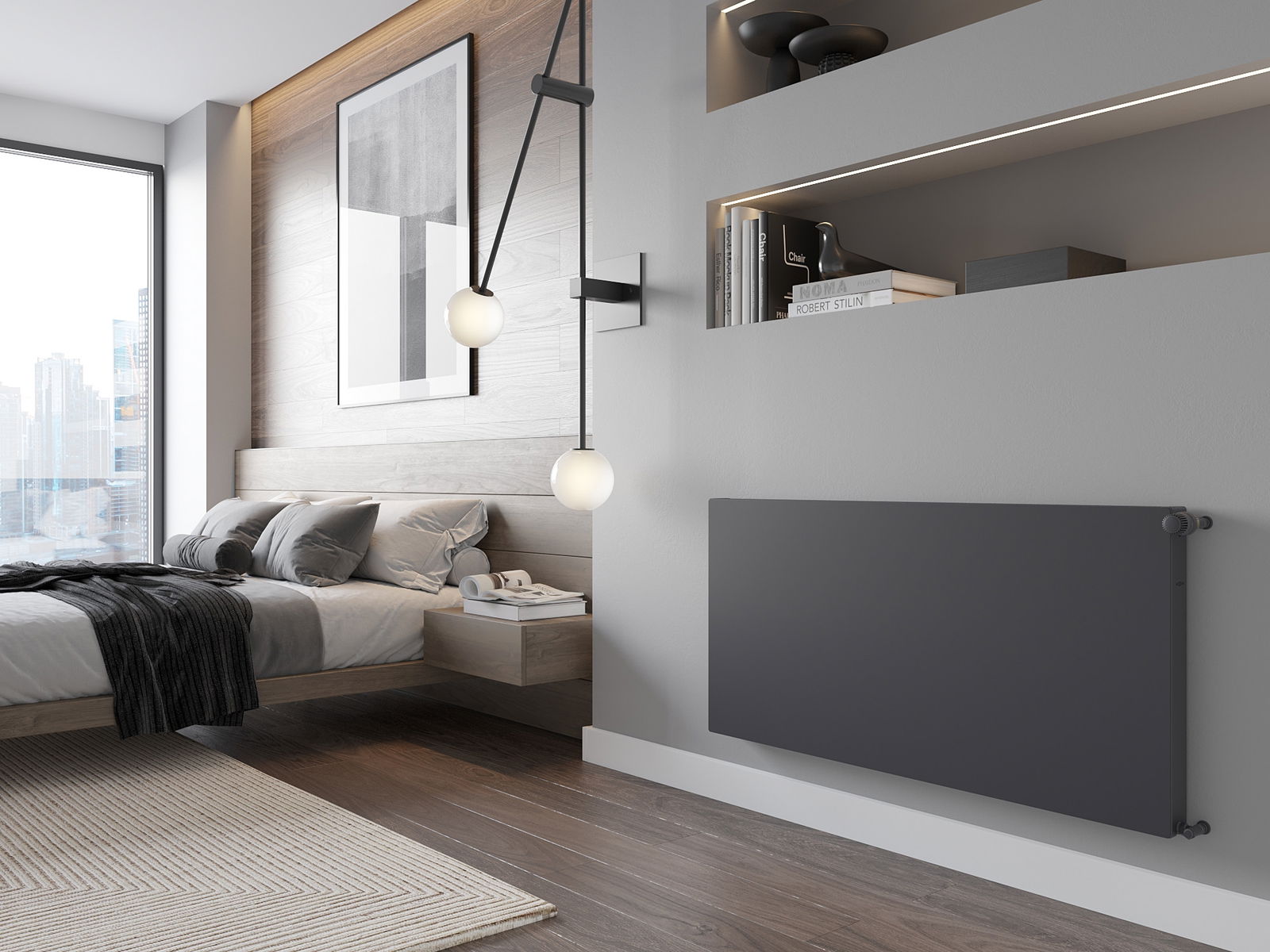 Mexen Flat CF11 plaatradiator 300 x 2000 mm, zij-aansluiting, 909 W, antraciet - W411F-030-200-66