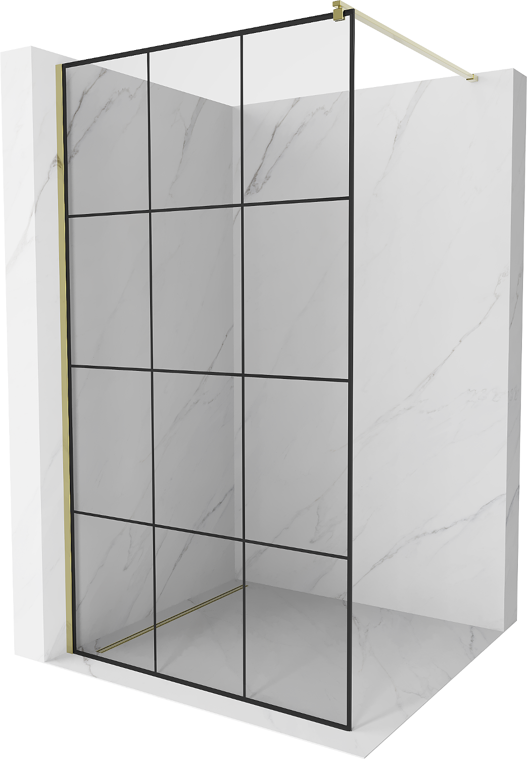Mexen Kioto douchewand Walk-in 100 x 200 cm, zwarte raster 8 mm, goud - 800-100-101-50-77