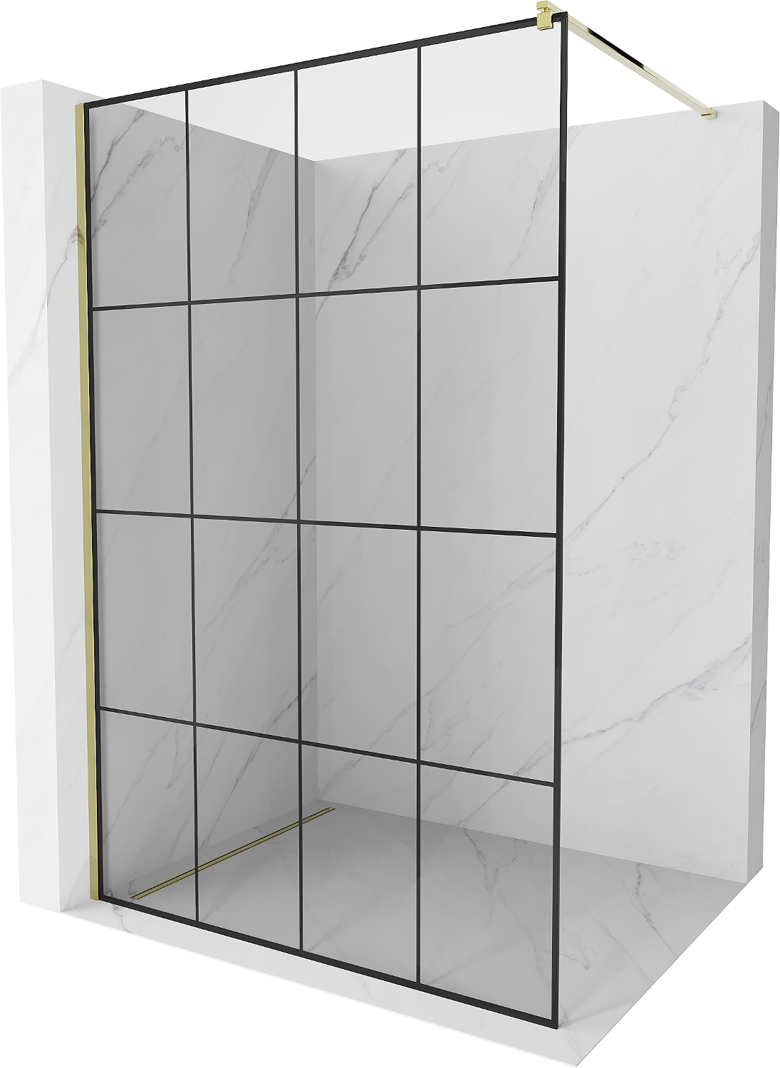 Mexen Kioto douchewand Walk-in 130 x 200 cm, zwart raster 8 mm, goud - 800-130-101-50-77