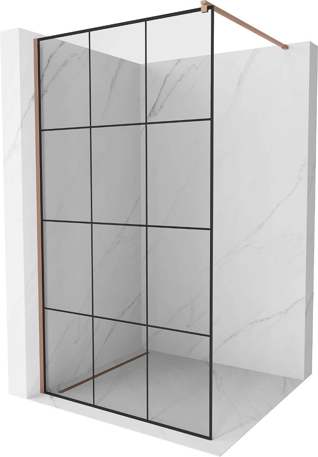 Mexen Kioto douchewand Walk-in 100 x 200 cm, zwart raster 8 mm, roze goud - 800-100-101-60-77