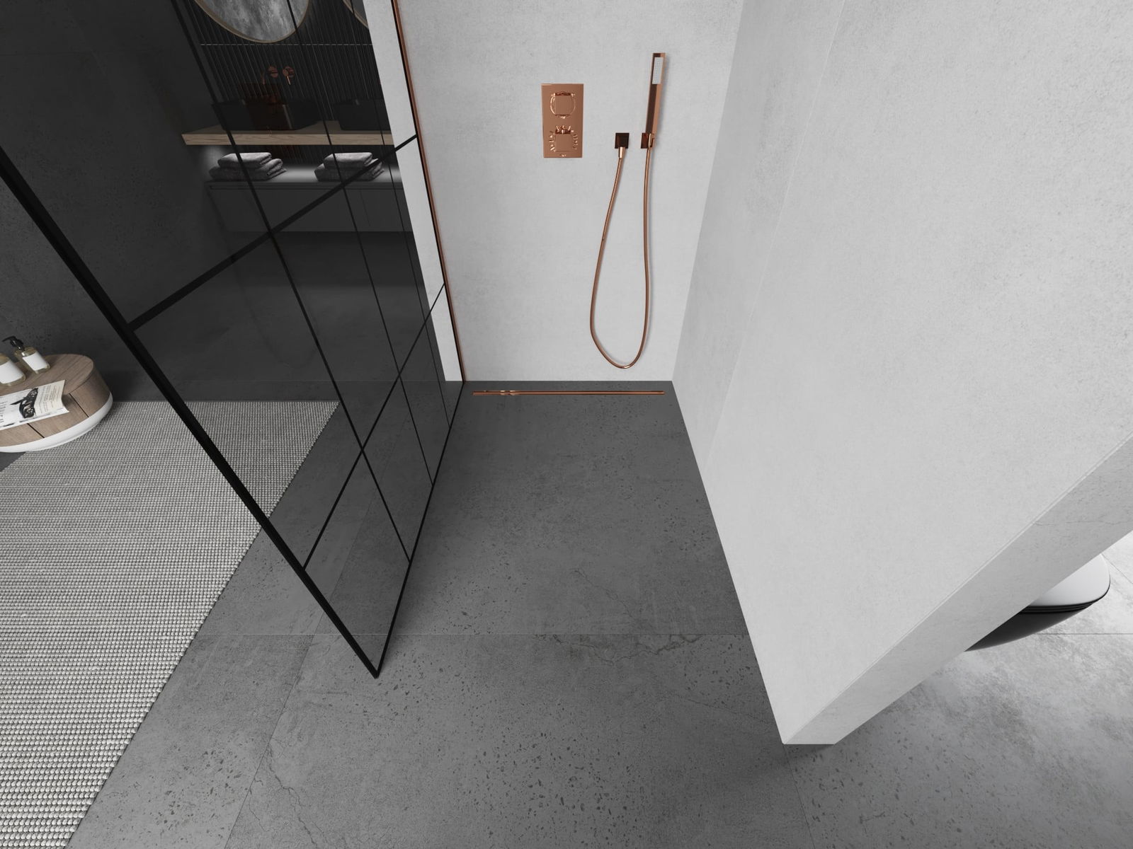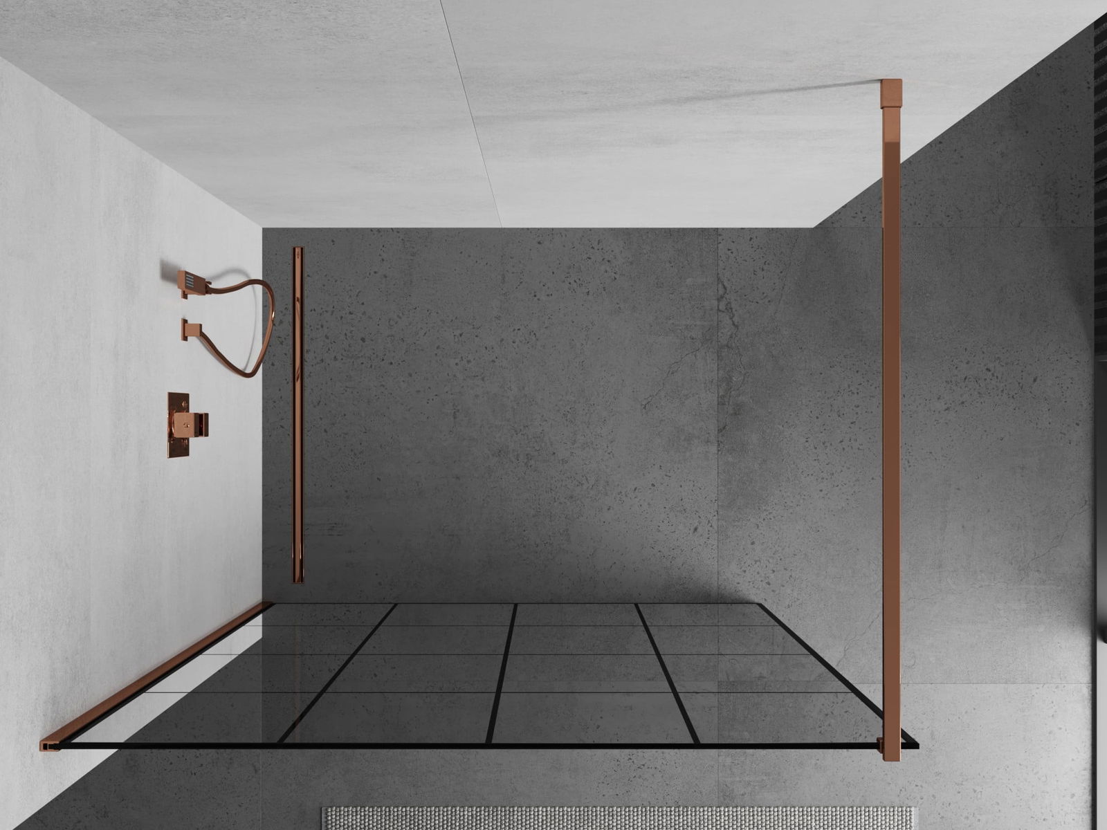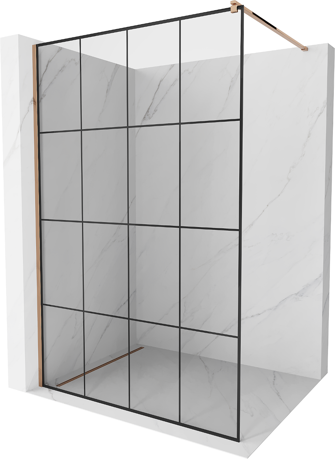 Mexen Kioto douchewand Walk-in 130 x 200 cm, zwart raster 8 mm, roségoud - 800-130-101-60-77