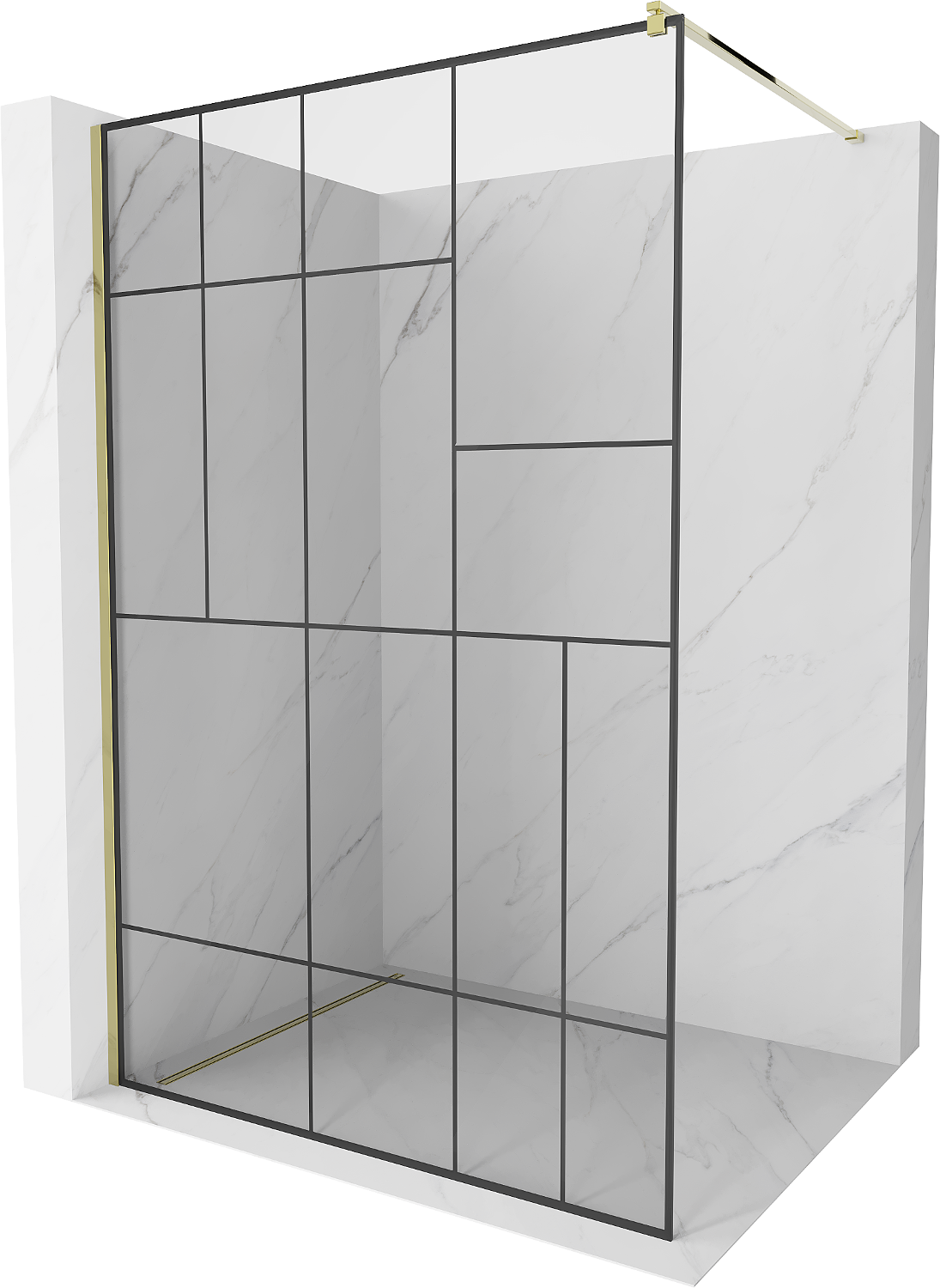 Mexen Kioto douchewand Walk-in 90 x 200 cm, zwart patroon 8 mm, goud - 800-090-101-50-78