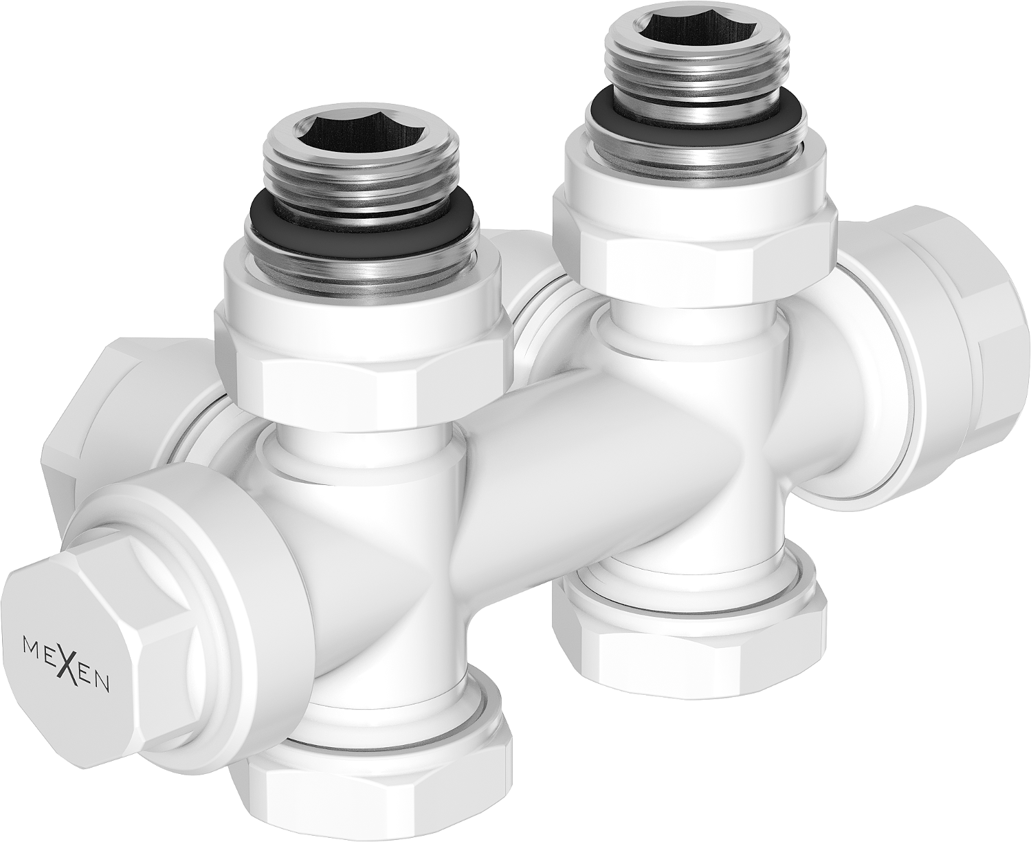 Universele aanvoer- en afsluitkraan voor hoek- en rechte aansluitingen, ongeacht of de aansluiting in de muur of in de vloer is
