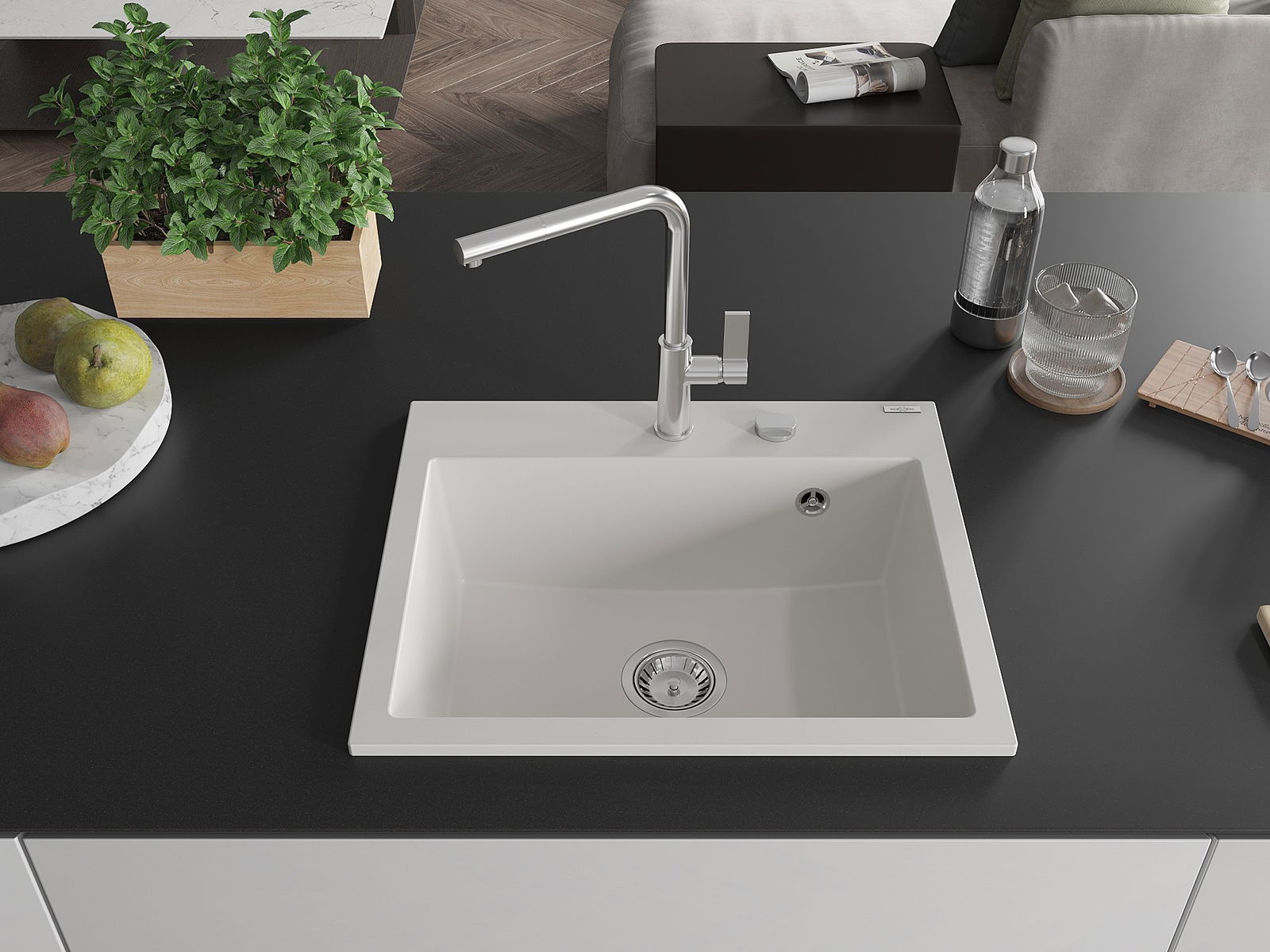 De gootsteen is gemaakt van hoogwaardig graniet. Het vormt een elegante en vooral praktische aanvulling op elke keuken, ongeacht de stijl. De hoge kwaliteit en duurzaamheid van graniet zorgen voor jarenlang gebruik.